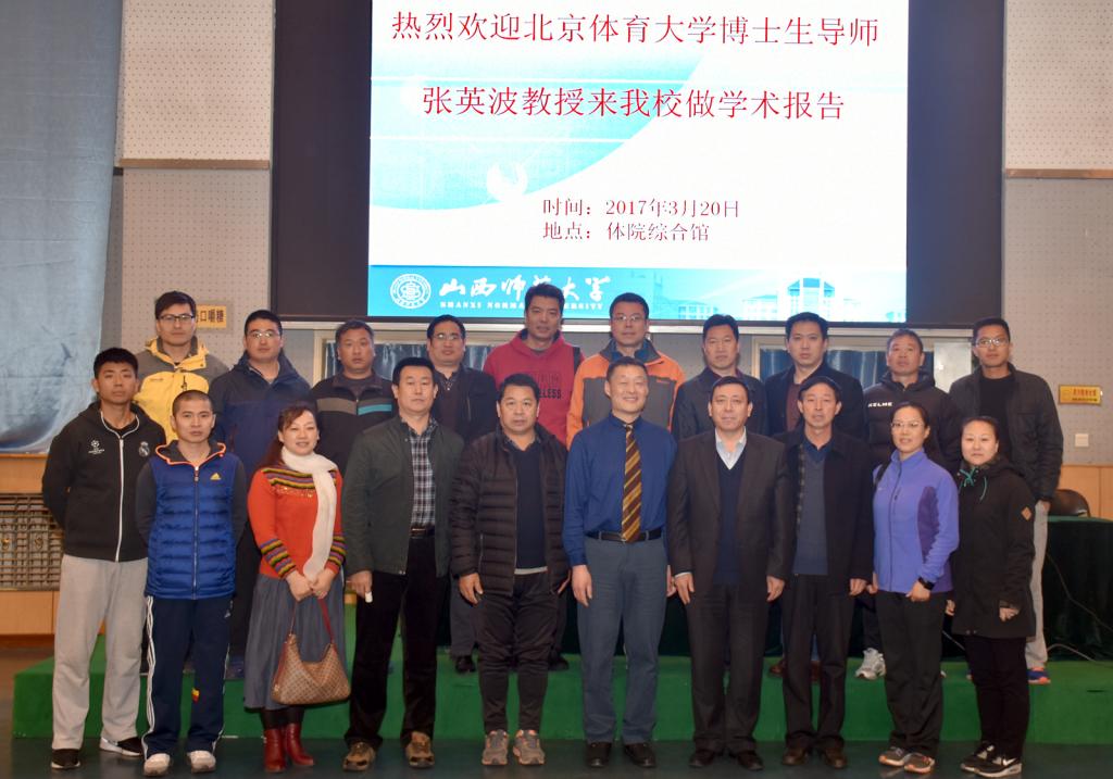 2017年3月20日上午,北京体育大学博士生导师张英波教授在太阳成集团tyc234cc综合馆一层给研究生、本科生及部分教师做了以“青少年动作模式发展与动作表现训练体系”为主题的学术报告。本次报告会由经理郑旗主持。