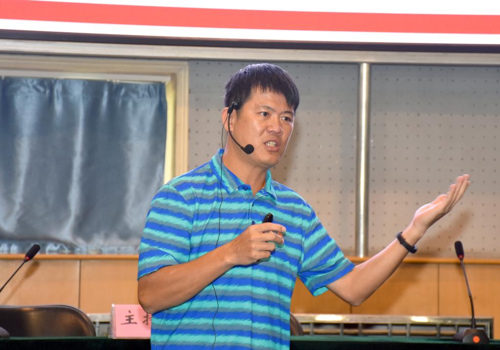黄永旺教授介绍了台湾体育大学的办学历程与发展理念,以品德内涵为切入点,用案例分析法,从品德教育5E(典范、解释、勉励、环境、经验)模式,论述了品德教育在体育运动过程中的作用和重要性,并就运动品德正向塑造以及阻碍品德塑造的诸多因素进行了详尽阐释。随后黄教授还与在场师生进行了互动,并亲切解答了员工所提出的问题。他渊博的知识、幽默的语言、结合鲜活的事例、深入浅出的讲解赢得在场师生的共鸣和阵阵掌声。