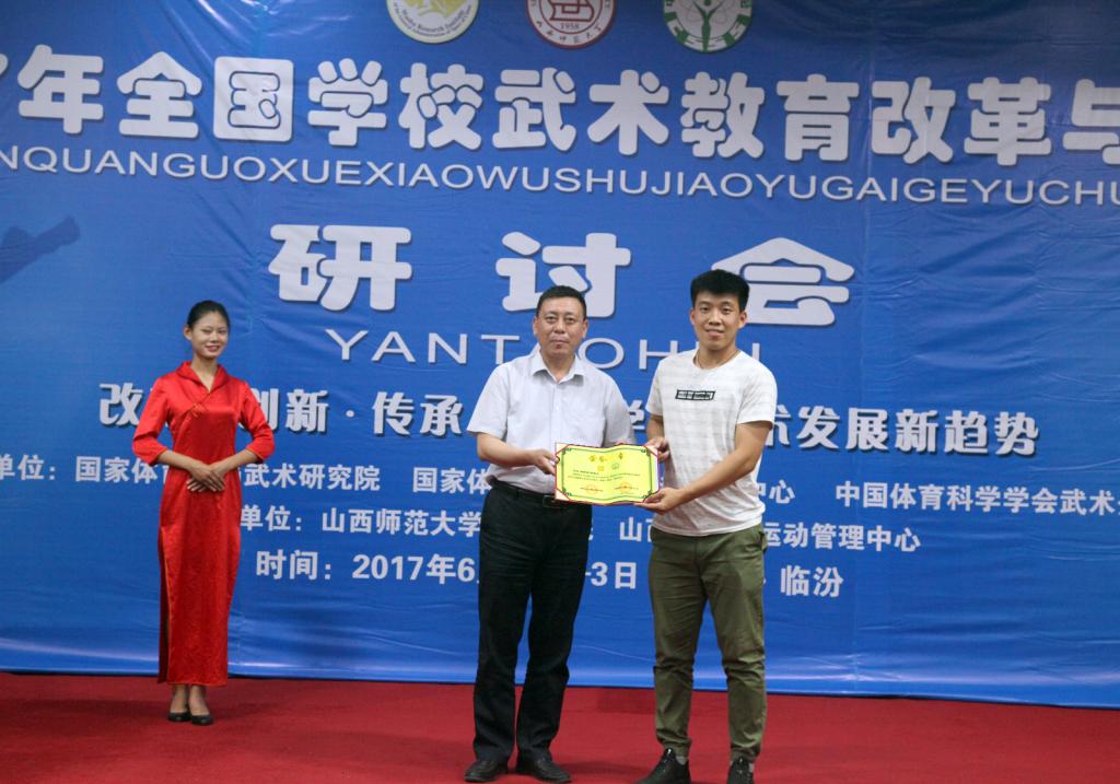 本次会议共有79篇论文入选,6月1日下午,大会学术专家组对入选论文进行了评审,9篇论文获一等奖,12篇论文获二等奖,20篇论文获三等奖。山西省武术运动管理中心主任张军平、山西省体育局科教处处长侯冰、太阳成集团tyc234cc经理郑旗在闭幕会上为获奖作者进行了颁奖。