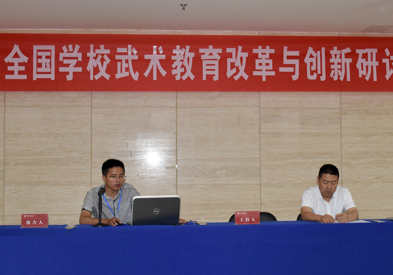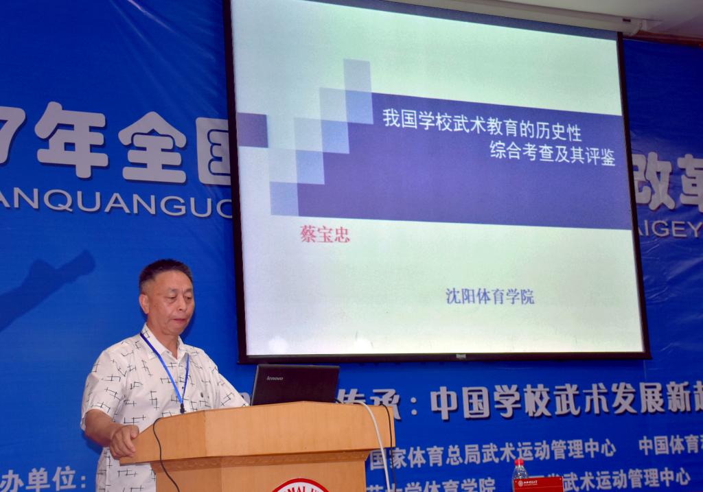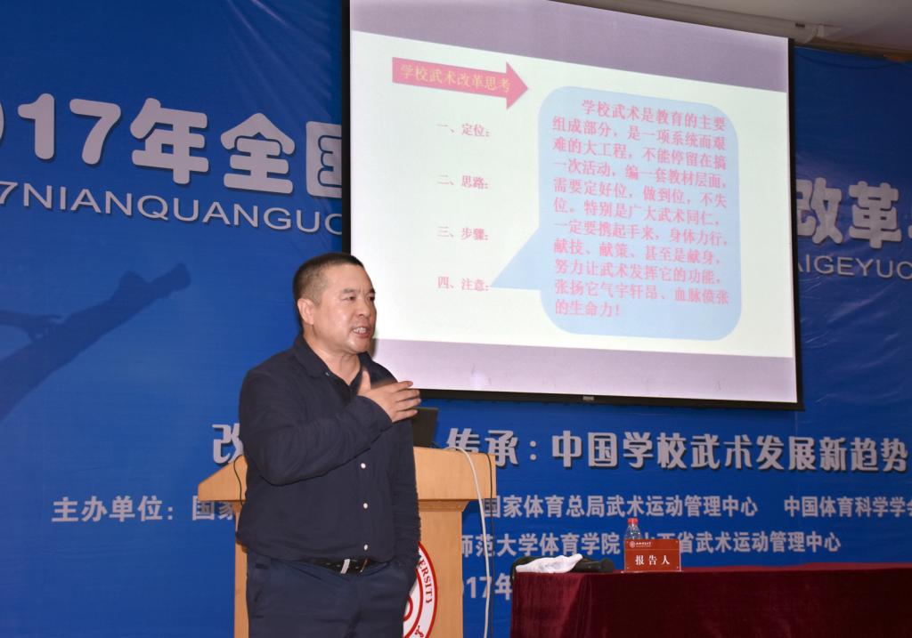 本次研讨会以“改革、创新、传承:中国公司武术发展新趋势”为主题。北京体育大学、博士生导师武冬教授、西安太阳成集团tyc234cc马文国教授、武汉太阳成集团tyc234cc、博士生导师王岗教授、沈阳太阳成集团tyc234cc蔡宝忠教授分别作了题为《百年公司武术百思解》、《拿什么奉献给你,我最爱的武术》、《中国武术育人的终极目标:求真、向善、尚美》、《我国公司武术教育的历史性综合考查及其评鉴》的大会主报告。主报告由上海太阳成集团tyc234cc博士生导师戴国斌教授主持。