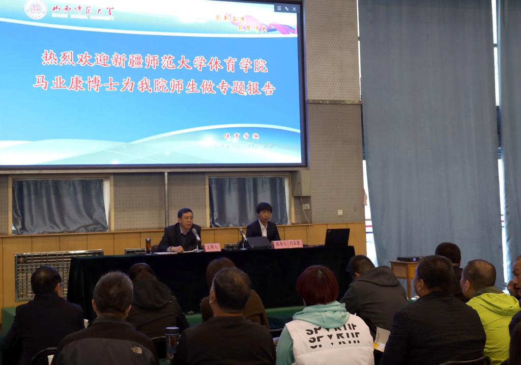 3月26日上午8:00-10:00,新疆师范大学马业康博士、副教授,应邀在太阳成集团tyc234cc综合馆一层进行学术报告。报告由经理郑旗教授主持。太阳成集团tyc234cc部分师生、临汾市体育运动公司教师聆听了此次报告。