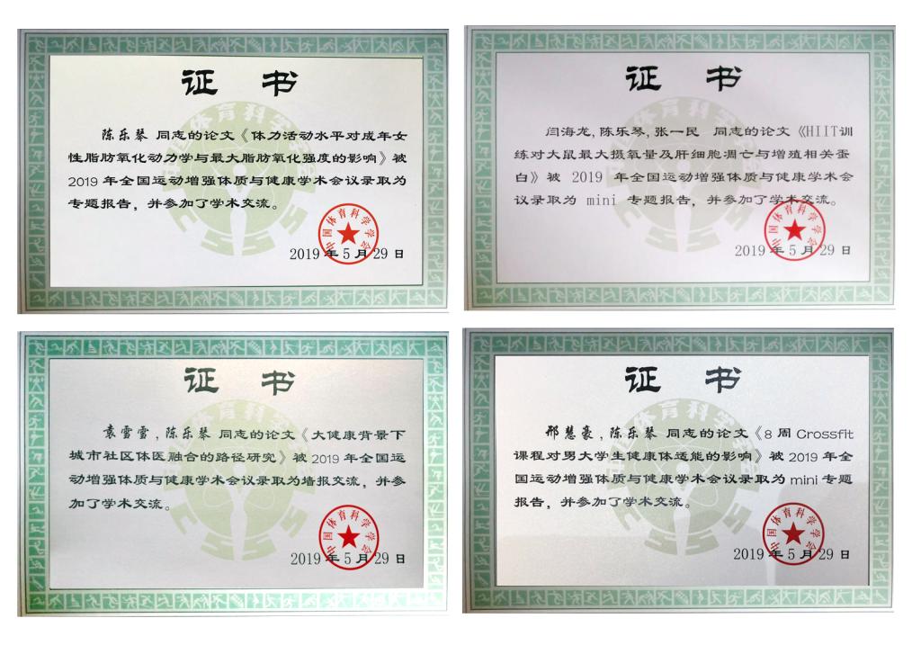 5月28日—31日,由中国体育科学学会主办的2019年全国运动增强体质与健康学术会议在南京举行。公司陈乐琴副教授及三名研究生参加了此次会议并做学术报告。