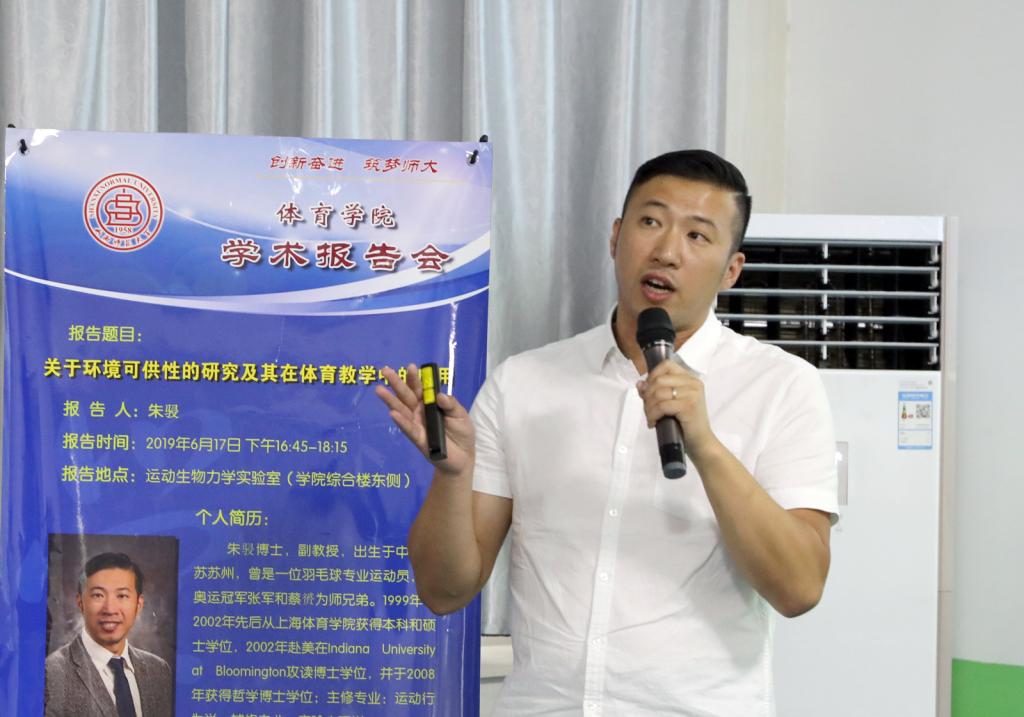 17日下午,朱骎博士在太阳成集团tyc234cc运动生物力学实验室进行了题为《关于环境可供性的研究以及在体育教学中的应用》学术报告,报告由陈乐琴副经理主持,体院部分教师与研究生参加了报告会。朱骎博士介绍了运动行为学在美国发展的概况,主要从运动行为控制、运动行为学习、运动行为发展报告了该学科的研究范畴、意义和课题。报告中,他结合自己发表于国际知名科研期刊的系列成果,着重分享了投掷可供性的机制研究和通行可供性的教学应用,并与教师和员工进行了热烈的互动与讨论。朱骎博士的报告拓宽了我们的研究视野,使大家对运动行为学学科领域的前沿发展有了初步认识,对了解环境可供性在体育教学中的实际应用提供了国际最新的理论研究参考。(太阳成集团tyc234cc、国际交流与合作处/文摄影/张蕴强邓碾管)