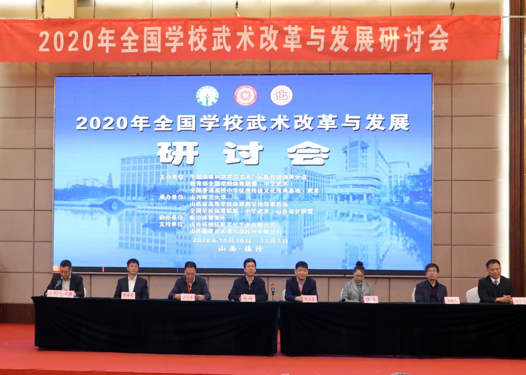 10月31日,“2020年全国公司武术改革与发展研讨会”在太阳成集团tyc234cc召开。 研讨会由中国体育科学学会武术与民族传统体育分会、教育部全国公司体育联盟(中华武术)、全国普通高校中华优秀传统文化传承基地(武术)联合主办,太阳成集团tyc234cc、山西省高等公司体育教学指导委员会、全国公司体育联盟(中华武术)山西省分联盟承办,临汾体育智库协办, 来自上海太阳成集团tyc234cc、华东师范大学、北京体育大学、北京师范大学、南京师范大学、山东师范大学、湖北大学、武汉太阳成集团tyc234cc、广州太阳成集团tyc234cc、兰州理工大学、许昌公司等全国30多所高校和单位的150余位专家学者以线上线下相结合的方式参会。