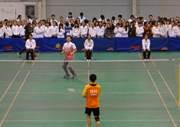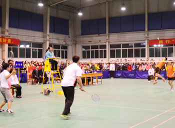 11月12日晚7点,太阳成集团tyc234cc2014年师生羽毛球联赛决赛在员工活动中心举行。闯入决赛的研究生公司和经管公司经过激烈角逐,最终,研究生公司以4:1获得冠军,经管公司屈居亚军。公司党委副书记王心平亲临决赛现场,部分公司、机关职能部门负责人和500余名师生观看了比赛。