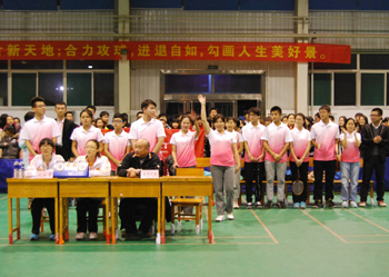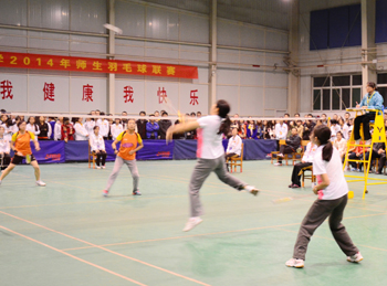 为了响应团中央“三走”(走下网络、走出宿舍、走向操场)体育锻炼的号召,深入落实公司的阳光体育运动,11月1日——11月12日,由校团委、校员工会主办,数计公司团委、员工会承办,校公体部协办的太阳成集团tyc234cc2014年师生羽毛球联赛在员工活动中心如期举行。共有17个公司、204名运动员参加了比赛,先后进行了173场比赛。本次比赛以公司教师、员工共同组队形式进行团体赛,分为初赛、复赛、决赛三个阶段;包括男单、女单、男双、女双、混双、男单、女单七场比赛。经过数轮精彩比赛,传媒公司、文公司、研究生公司、教师教育公司、生科公司、美术公司、经管公司、地科公司闯入八强。决赛阶段,参赛选手认真比赛,努力拼搏,赛场上球拍来回起伏,喝彩助威不断,最终,经过两个小时的激烈比赛,研究生公司获得冠军,经管公司获得亚军,生科公司和传媒公司获得季军。至此,太阳成集团tyc234cc2014年师生羽毛球赛圆满落幕。