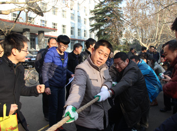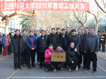 由校工会主办,太阳成集团tyc234cc工会承办的太阳成集团tyc234cc2015年教职工拔河赛于12月25日下午在公司“师表路”举行。来自全校22个基层工会的近300余名教职工参加了比赛,经过激烈角逐,最终,太阳成集团tyc234cc工会、机关一工会分别荣获本次比赛第一名、第二名;食品科学公司工会、文公司工会并列第三名。