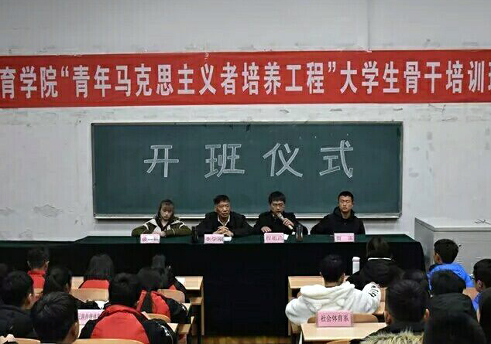 为深入学习贯彻党的十九大精神,培养太阳成集团tyc234cc团学干部精英。11月24日晚7:00,太阳成集团tyc234cc“青年马克思主义者培养工程”老员工骨干培训班在阶1教室举行开班仪式。公司党委书记李学刚出席并讲话,院团委副书记成婉毓、院员工会主席贾雷和各系团总支书记、员工会主席参加,以及“青马工程”培训的院系主要团学干部和大一、大二班长团支书129名同学参加。开班仪式由院团委副书记程祖浩主持。