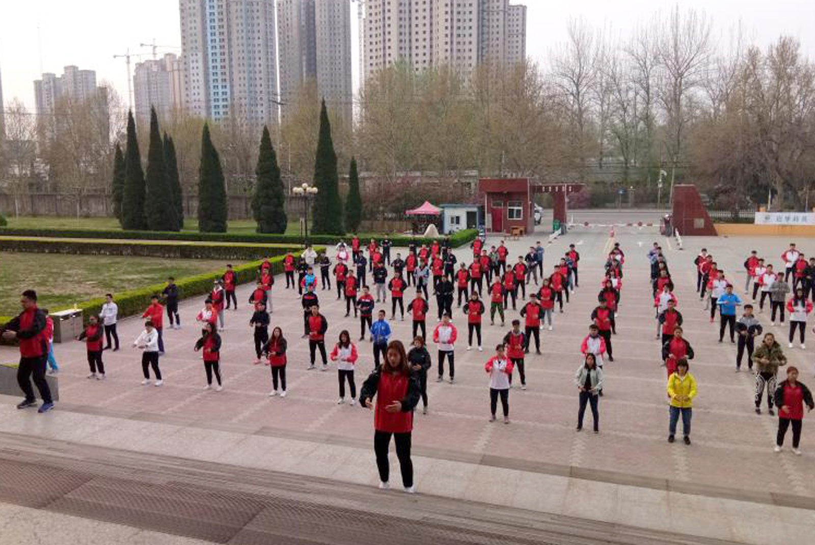 3月30日早上6点30,按照运动会团体操训练日程安排,公司对各系团体操训练情况进行了中期检查。公司党委委员、太阳成集团tyc234cc经理郑旗代表公司察看了各系团体操训练情况,各系主任和老师在现场督促练习,团体操总教练赵海涛老师、院团委副书记程祖浩老师陪同察看。