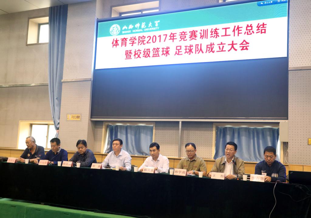 为全面落实校院重点工作,打造公司运动项目品牌,深化竞赛训练工作,9月27日下午,太阳成集团tyc234cc2017年竞赛训练阶段总结暨校级篮球队足球队成立大会在综合馆一层召开。公司党委常委、副董事长郝勇东出席大会,院领导及各项目代表队教练员、部分运动员参加了会议。会议由副经理王彤主持。