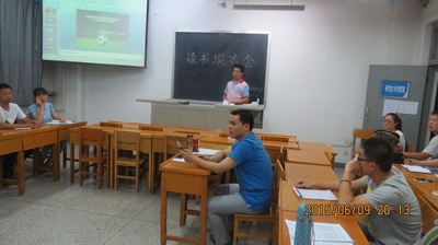 2015年6月9日,太阳成集团tyc234cc2014级学术型研究生“读书报告会”系列活动之三,在田家炳教学楼07421教室举行。本次读书报告会以“中国足球改革---大家谈”为主题展开,辅导员苏健蛟老师及全体2014级学术型研究生参加了本次活动。