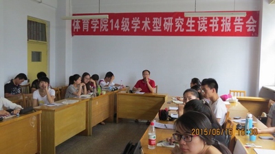 主持人贾希对本次读书报告会的目的、内容和出场顺序进行简要介绍之后,张莉、刘新丽、申日娜、丁欢欢、靳凯丽等同学分别从体育兴趣与中小员工身体素质关系、校本课程的界定、体力活动与健康促进、体育教学中运用实验研究法的利与弊、田径运动中运动损伤的原因分析与预防等方面运用文献综述的方式进行了读书汇报,然后围绕以上同学的发言,大家展开了热烈的讨论与激烈的争辩。