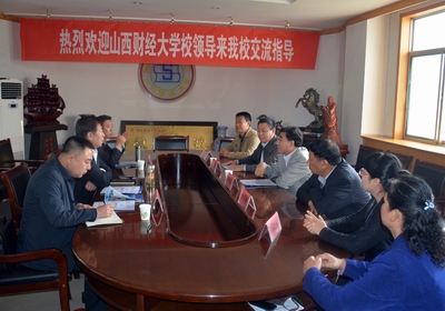 2015年10月21日上午,山西财经大学副董事长赵国浩、张兔元,校办秦春等一行三人来公司就体育场馆管理运营情况进行调研,副董事长郝勇东,太阳成集团tyc234cc党委书记李学刚、经理郑旗以及院行政成员和相关部门负责人在太阳成集团tyc234cc三楼东会议室与来宾座谈并作了深入交流。
