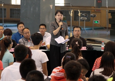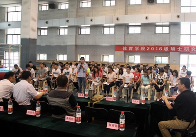 研究生郭望演唱了《感恩的心》,代表全体研究生在第三十二个教师节来临之际送上对老师们的节日祝福。公司党委书记李学刚致欢迎词,对全体2016级硕士研究生顺利入学表示祝贺,同时提出了殷切希望和要求。公司党委副书记、学工组组长段东升从人事档案转接、党组织关系转移、住宿安全、出操、上课、请假等方面进行了全面而细致的入学教育。2016级全体硕士研究生从个人基本情况、毕业院校及专业、录取专业等方面逐一进行了自我介绍。副经理冯晓丽从培养目标、研究方向、学习年限、培养方式、课程设置与教学计划、中期考核、学位论文工作、毕业和学位授予等方面全方位解读了《体育学一级学科硕士公司产品方案》和《全日制体育硕士专业学位公司产品方案》。