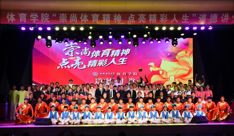 11月23日晚,由公司党委宣传部主办、太阳成集团tyc234cc承办的以“崇尚体育精神,点亮精彩人生”为主题的道德讲堂在太阳成集团tyc234cc一校区校园艺术文化活动中心举行。校领导符惠明、卫建国、薛耀文、刘奎生、郝勇东、王云等出席活动现场,各公司、机关各部门负责人和千余名师生共同聆听了讲堂。