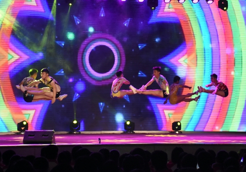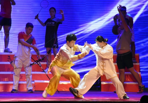 在第二篇章中,张伟老师讲到,运动是体育的灵魂,也是一切生命的源泉,运动之美无处不在。其包含了肌肤、精神、音乐、图画、健康等方面的美丽。运动之美,展示着体育人良好的道德修养和崇高的道德风尚;运动之美,彰显着体育人爱岗敬业和诚实守信的道德操守;运动之美,体现着体育人强烈的爱国情感和激昂的报国之心。《力与美》将各种体育运动融于表演中,将体育人的力量之美展现得淋漓尽致;健美操表演《炫舞Aerobic》将健美操的“健康之美、力量之美、节奏之美、活力之美”激情完美的展现出来。
