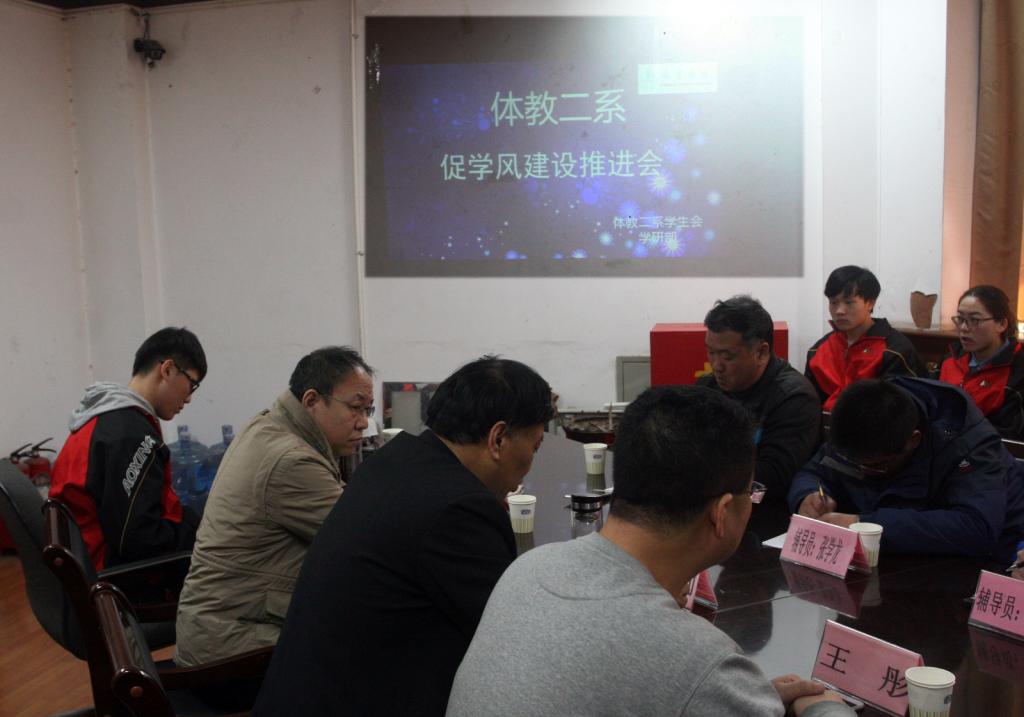 为了进一步加强学风建设,激发员工学习的积极性与主动性,体育教育二系于3月1日中午,在西会议室召开了员工会干部和各班班团干部参加的学风建设推进会。太阳成集团tyc234cc公司党委书记李学刚,副经理王彤,系主任吴峰山及各班辅导员出席了本次会议。