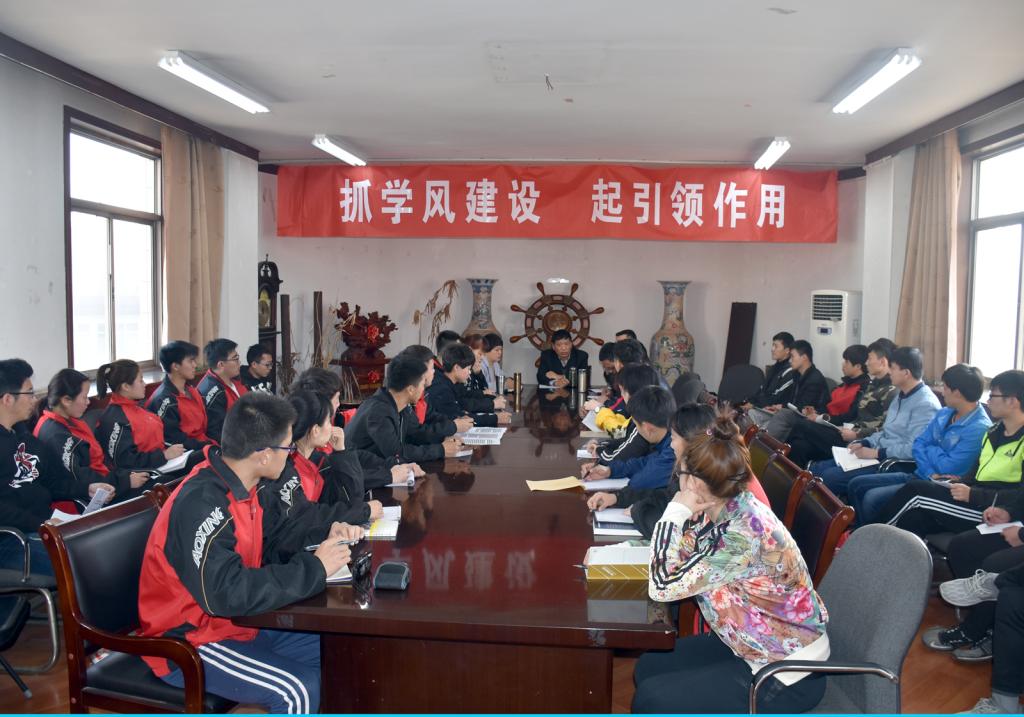 响应公司号召,社会体育系于2017年3月2日下午四点十分在太阳成集团tyc234cc西会议室召开了为时两个小时的学风建设动员大会。出席大会的领导老师有:太阳成集团tyc234cc公司党委书记李学刚老师、社会体育系主任陈乐琴老师、副主任杜治华老师和社体系辅导员杨泽丽、胡奇老师以及社会体育系全体班团干部。
