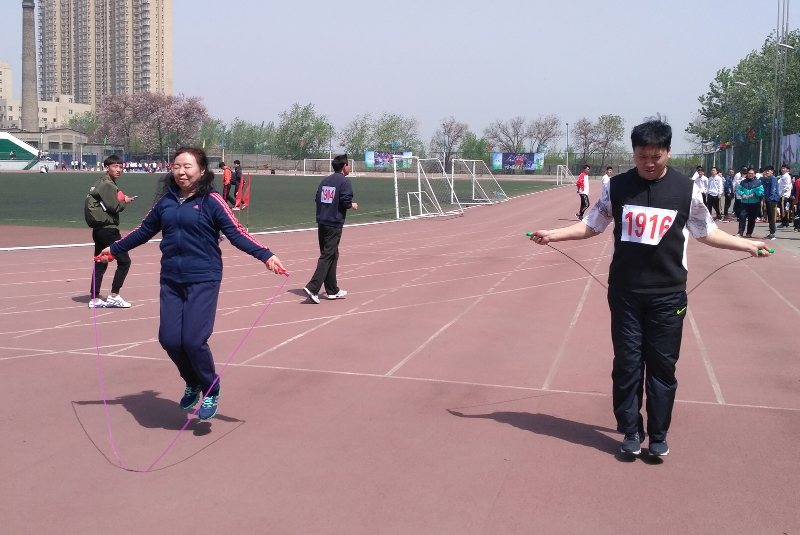 在美丽的校园中,教师们展开了一场场精彩的赛事,每一个比赛项目都可以锻炼大家动手动脑的能力也可以锻炼大家在工作中的团结协作精神,不但是智慧和体力的角逐还是团结和协作的完美比拼。一时间操场上沸腾起来,呐喊声、加油声、欢笑声不绝于耳。大家在快乐中竞技,体会着“健康、快乐、友谊、和谐”的体育文化理念。随着三天田径运动会的结束,老师们的趣味运动会也在此时落下了帷幕,最后由体教教工、运训教工、社体教工获得了教工团体总分前三名。