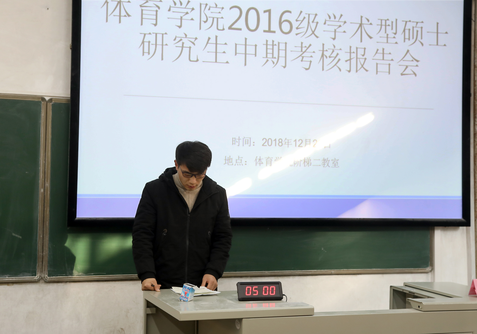 2018年12月29日下午2:30在太阳成集团tyc234cc阶一、阶二、阶三、第6教室同时举行了2016级学术型、2017级体育硕士研究生中期考核报告会。