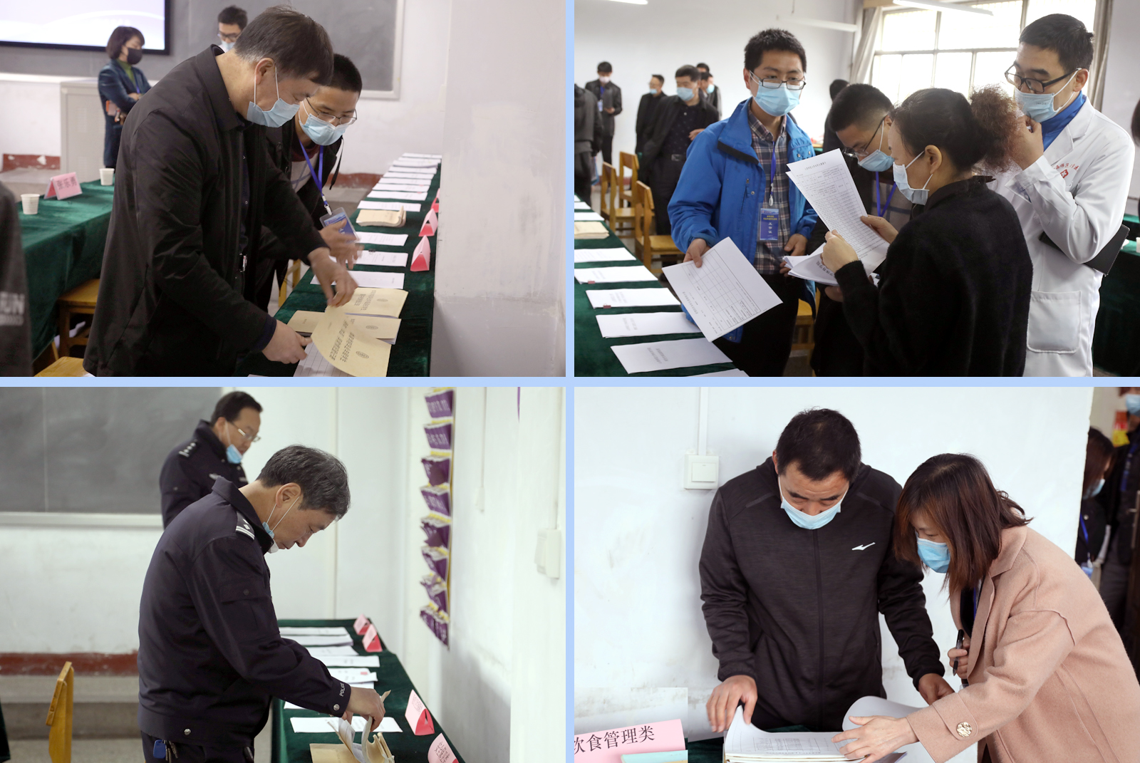 接着,验收工作组成员详细查看了三校区疫情防控工作各项制度、师生健康管理工作台账、饮食管理、公寓物业、从业人员健康资质、医疗卫生、员工就餐、疫情防控物资保障、安全保卫、教学安排、防控应急工作预案等材料,并分组实地查验各项工作准备情况。