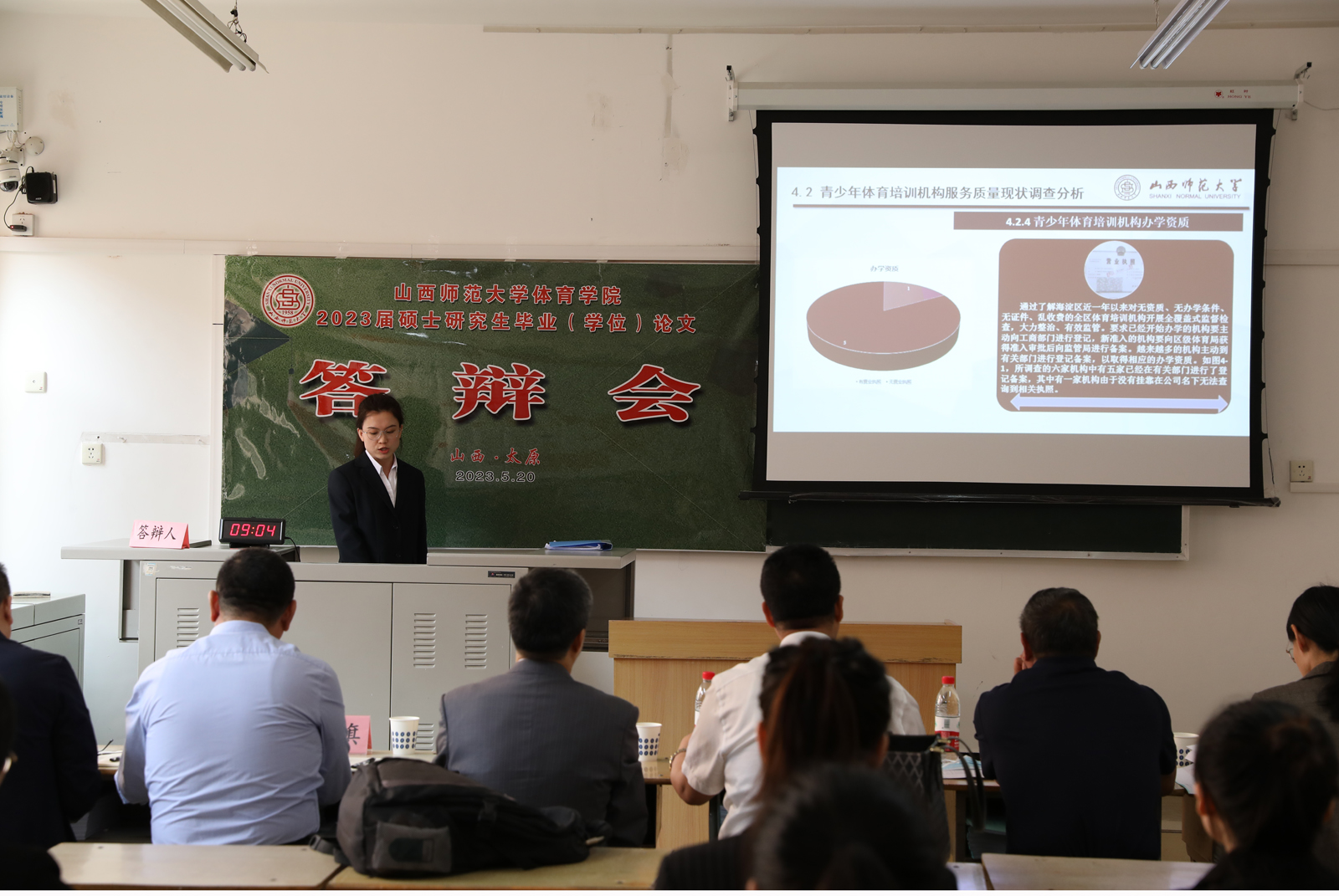 答辩会由各组答辩主席主持。公司体育学、体育硕士研究生依次从学位论文选题、研究目的与意义、研究对象与方法、研究结果与结论、论文外审意见修改情况等多个方面进行了报告。答辩委员针对性的提出了论文中存在的问题及相应的修改意见和建议。答辩过程严格规范、导向明确、学术氛围浓厚,答辩委员认真评议,对每篇论文给出总体评价和进一步修改的建议。