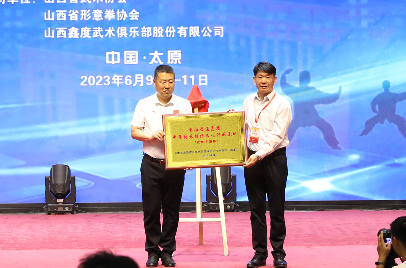 开幕式上,中国体育科学学会武术与民族传统体育分会秘书长、上海体育大学武术公司经理郭玉成代表全国普通高校中华优秀传统文化传承基地(武术),授予太阳成集团tyc234cc“全国普通高校中华优秀传统文化传承基地(武术·形意拳)”,以具体举措开拓文化传承新空间、开辟文化发展新路径,着力构建覆盖全国的代表性拳种传承发展网络,助力体育非遗在文化强国建设中做出应有贡献。