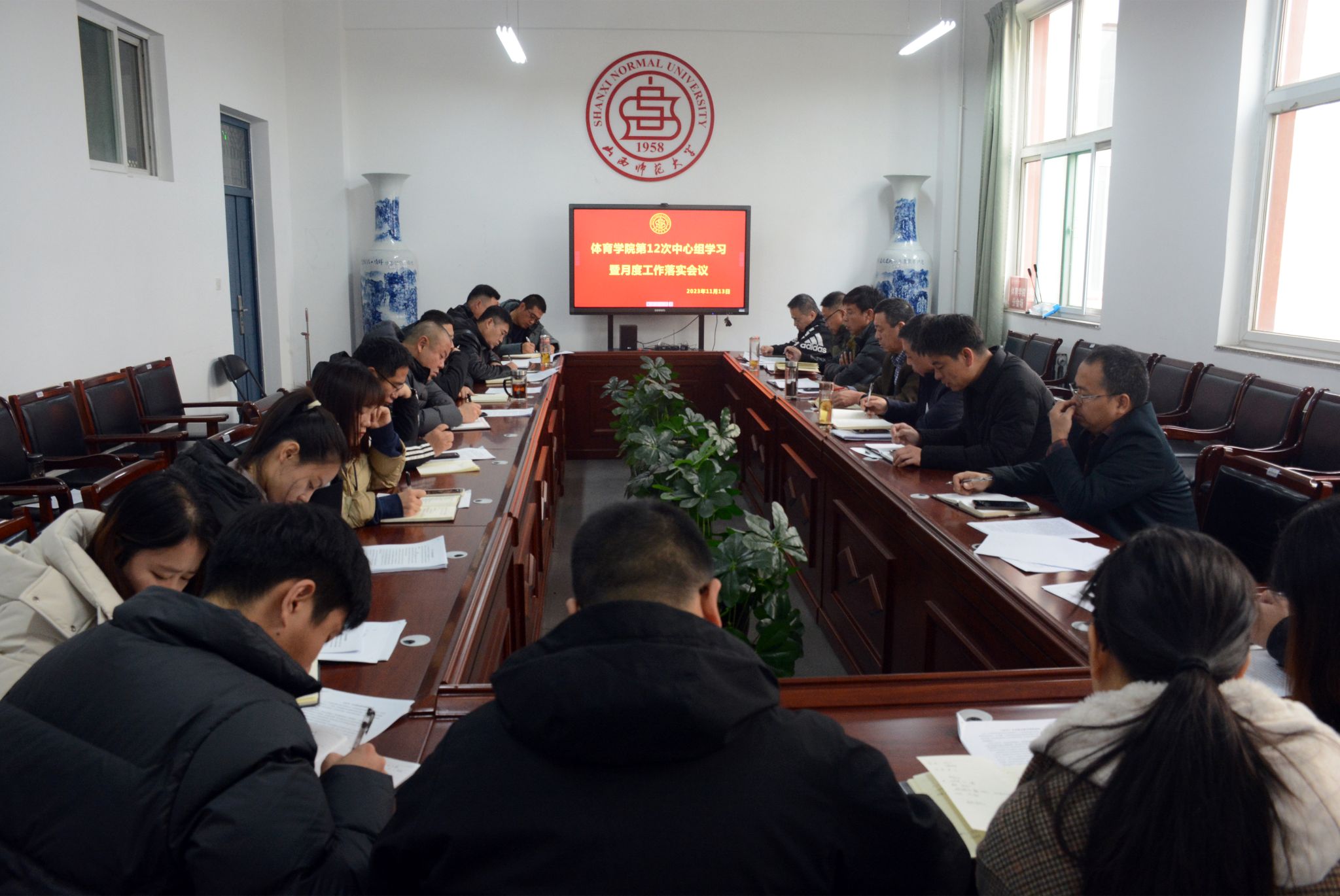 11月13日上午,太阳成集团tyc234cc在7号楼二层东会议室召开中心组第12次中心组学习暨月度工作落实会议。太阳成集团tyc234cc党委中心组成员、各系部科室主任、副主任、各党支部书记、副书记、专职辅导员参加会议,会议由公司党委书记卫建平主持。