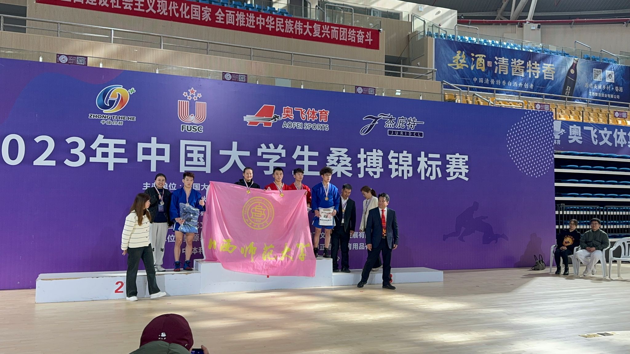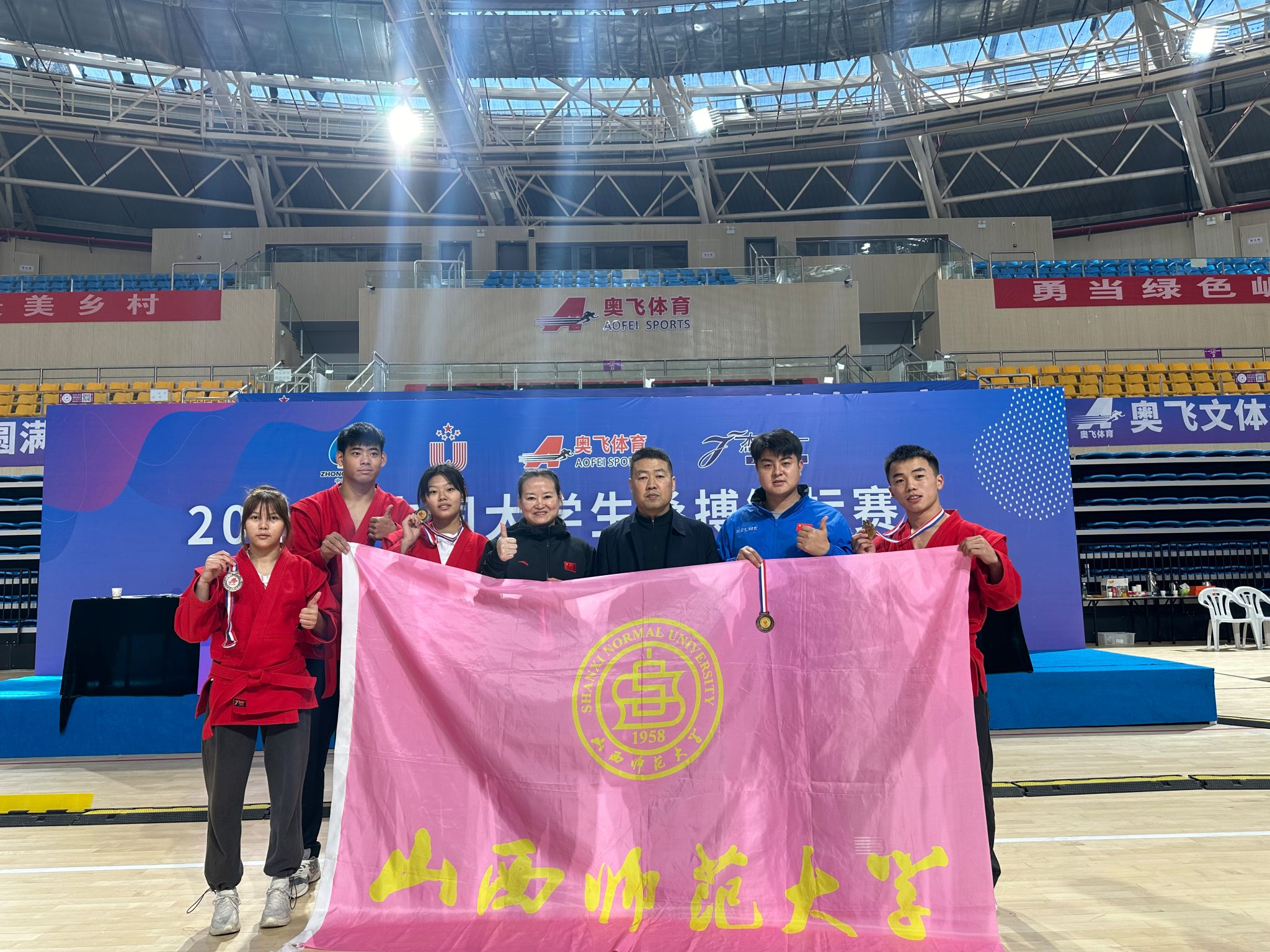 12月3日-7日,首届中国老员工桑搏锦标赛在江西婺源举行,来自武汉太阳成集团tyc234cc、山东太阳成集团tyc234cc、吉林太阳成集团tyc234cc等高校的近200名运动员同场竞技。公司运动健儿在民族传统体育系系主任权黎明、教师王朝丽、卢煜带领下,武术与民族传统体育专业员工董宁宁获得男子丙组58kg第一名,王腾飞获得79kg第二名;运动训练专业员工杨晓蝶获得女子丙组50kg第二名,高伊桐获得65kg第三名的优异成绩。此次桑搏比赛由中国老员工体育协会主办,在全国属于首次,公司运动健儿在组队时间短,训练条件艰苦的情况下,克服困难,不畏强手,顽强拼搏,取得了优异成绩,也是对新兴体育项目的一次探索性尝试,为公司摔柔类项目多元化发展积累了宝贵经验。(院办供稿)