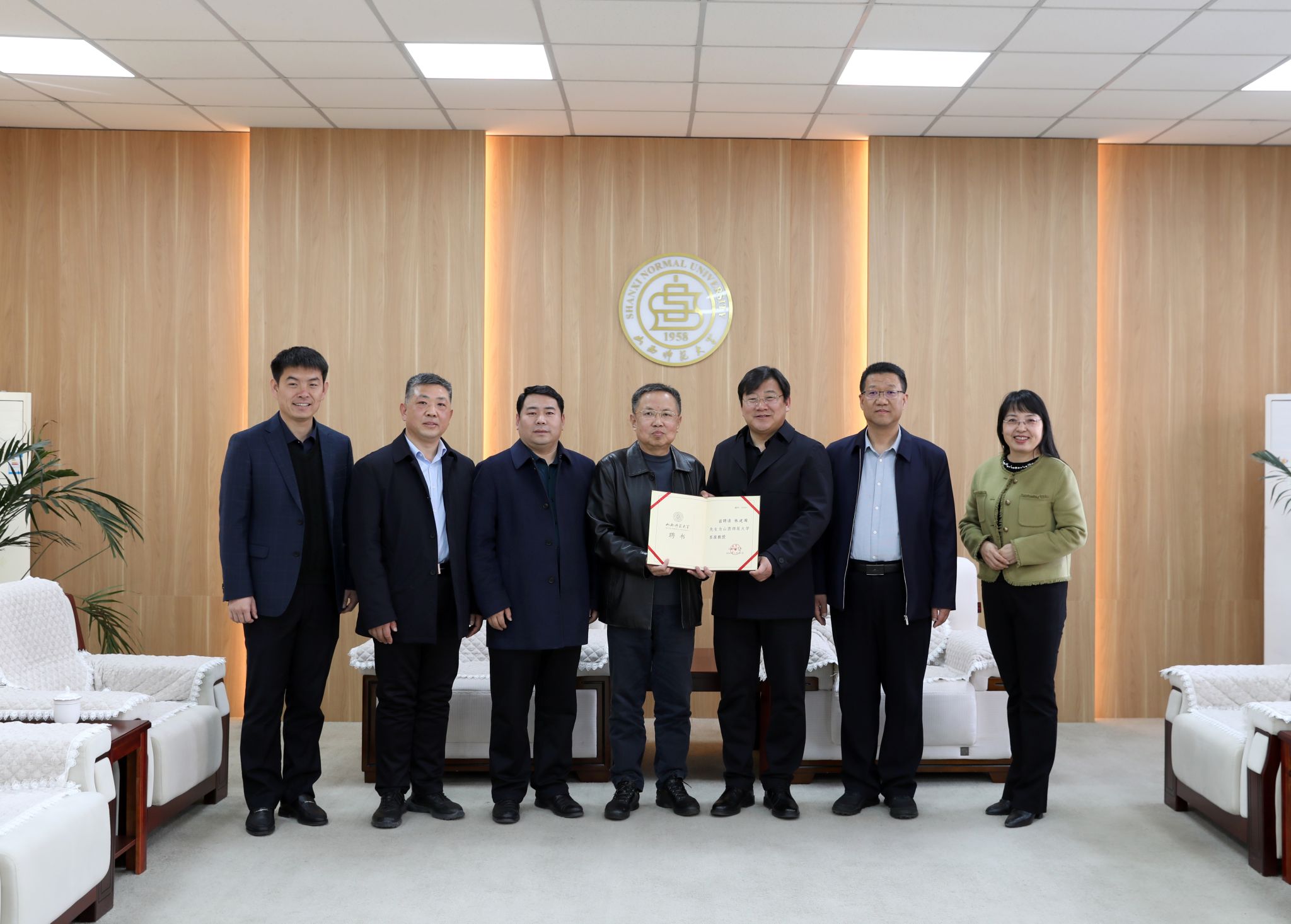 王云副董事长会见张建国,为他颁发客座教授聘书