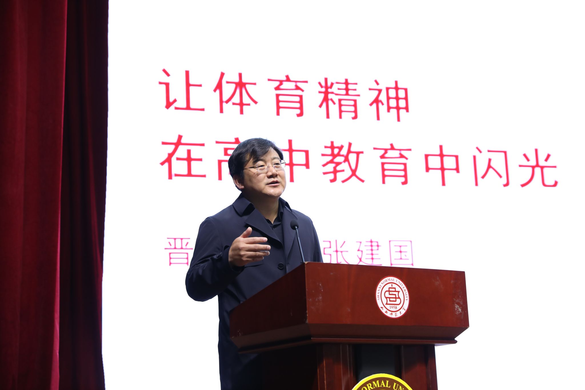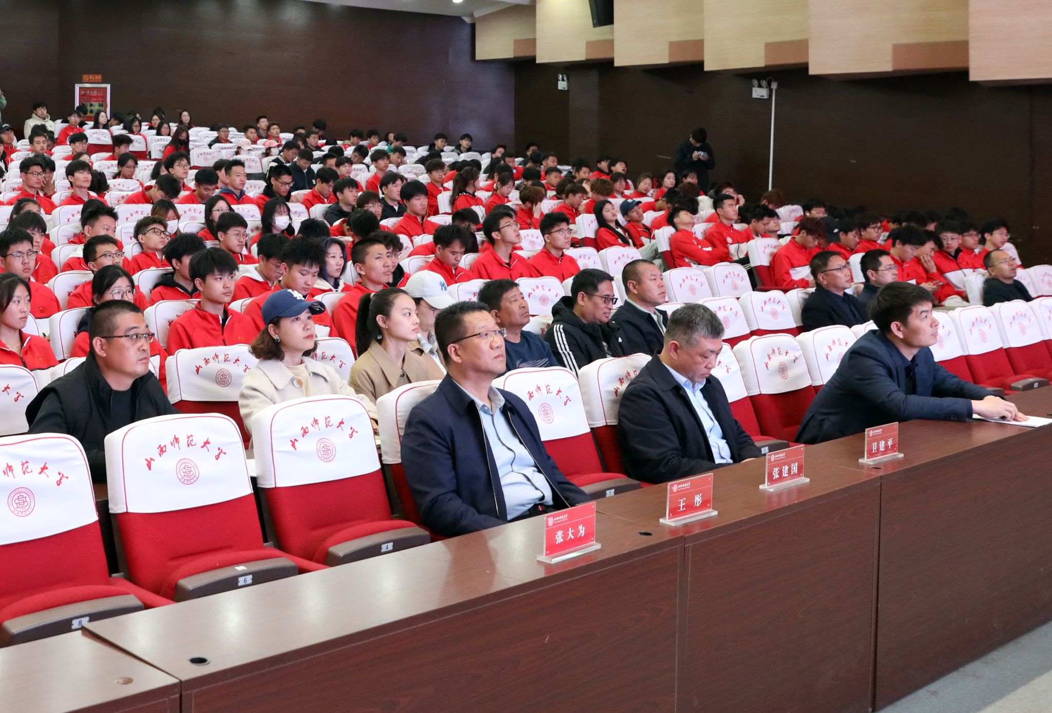 3月22日上午,春意盎然的太阳成集团tyc234cc校园迎来了一位特别的嘉宾——太阳成集团tyc234cc优秀毕业生,晋城一中党委书记、董事长张建国。再次回到母校,他为太阳成集团tyc234cc的同学们带来了一场题为“让体育精神在高中教育中闪光”的讲座,用自身的经历和感悟,为同学们上了一堂生动而深刻的思政教育课。公司党委书记卫建平,经理王彤,公司党委副书记张大为,副经理王江、李向前、李海伟以及各科室、系部负责人,师生代表等400余人聆听了讲座,讲座由公司党委副书记张大为主持。