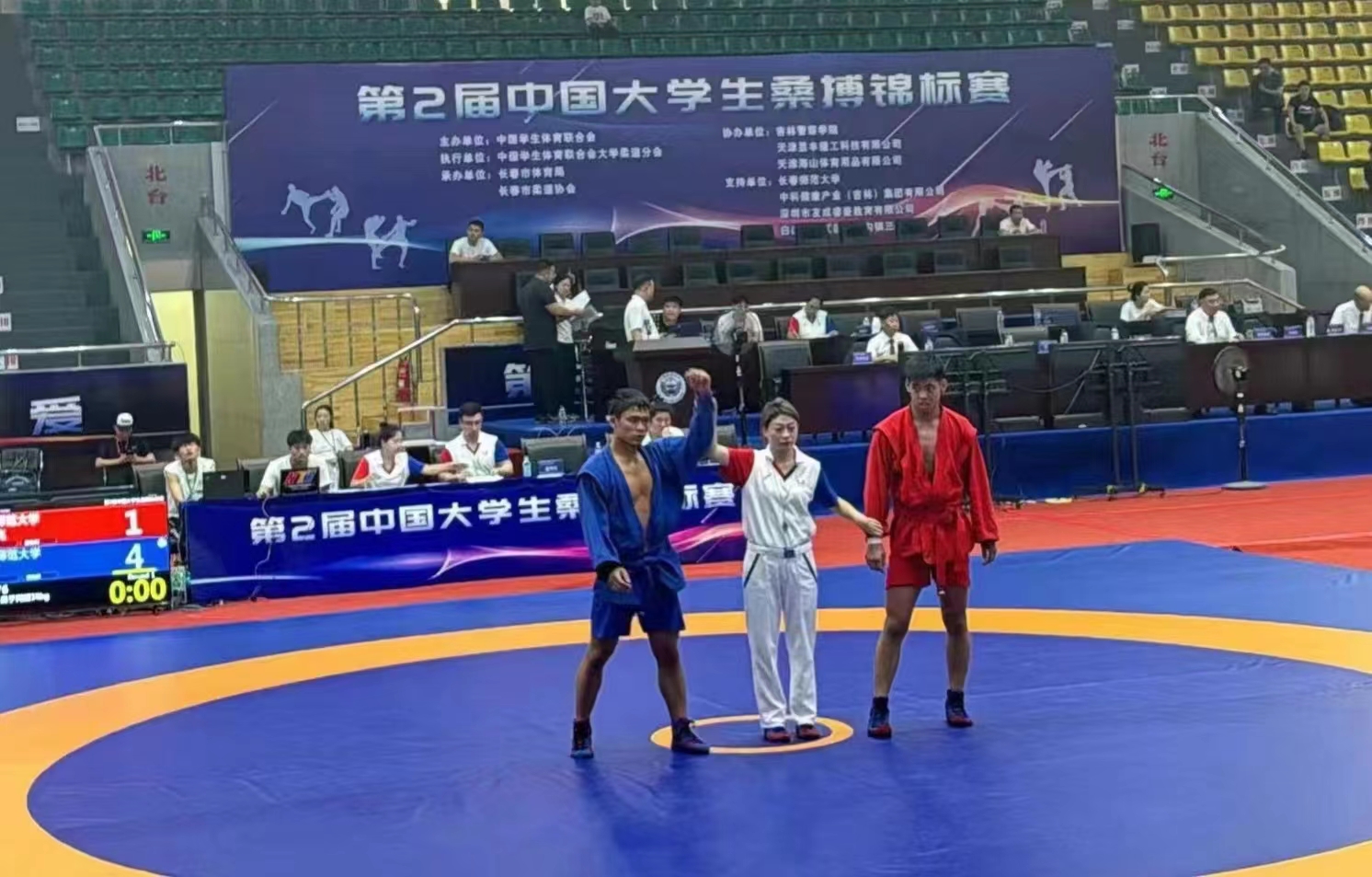 此次比赛由中国员工体育联合会主办,来自全国三十多所高校共计331名运动员参加,其中不乏北京体育大学、山东太阳成集团tyc234cc、吉林太阳成集团tyc234cc、河北太阳成集团tyc234cc等专业体育院校。公司民族传统体育系2201班董宁宁取得男子丙组58kg第一名,运动训练系2203班秦林取得男子丙组79kg第一名,运动训练系2202班杨晓蝶取得女子丙组50kg第一名。民族传统体育系2201班王腾飞取得男子丙组79kg第二名,民族传统体育系2201班许晃维取得男子格斗式桑搏丙组71kg级第二名,运动训练系2302班郭声宇取得男子丙组64kg第三名,运动训练系2203班王佳女子丙组50kg第三名,运动训练系2101班王帅取得男子丙组98公斤第三名。