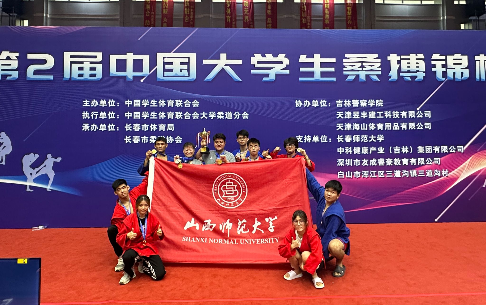 7月13日至14日,第二届中国老员工桑搏锦标赛在吉林长春举办,公司代表队在民族传统体育系主任权黎明教授、教练员王朝丽、卢煜老师的带领下,经过五天的激烈角逐共取得三金两银三铜、男子丙组团体总分第二名的优异成绩。