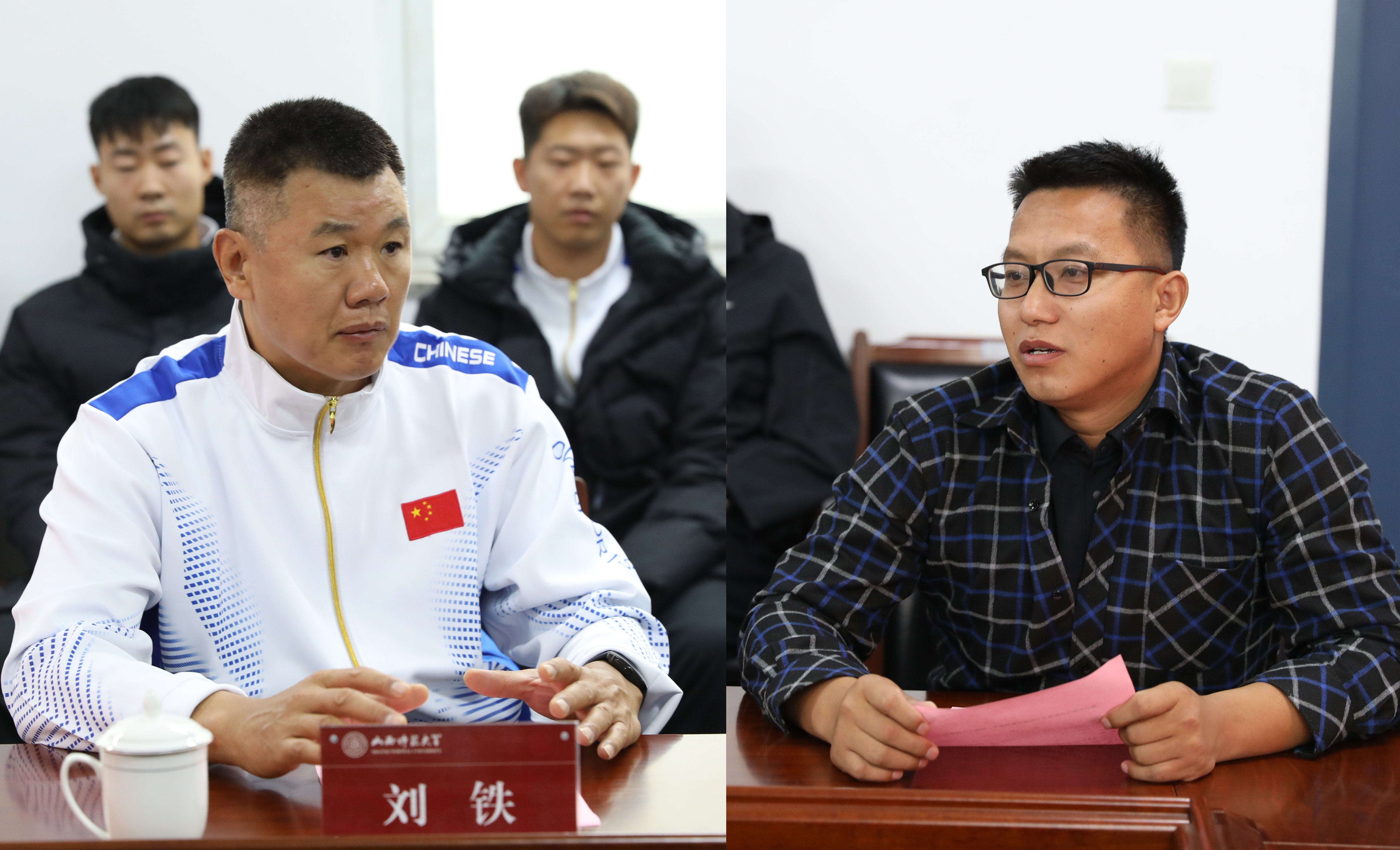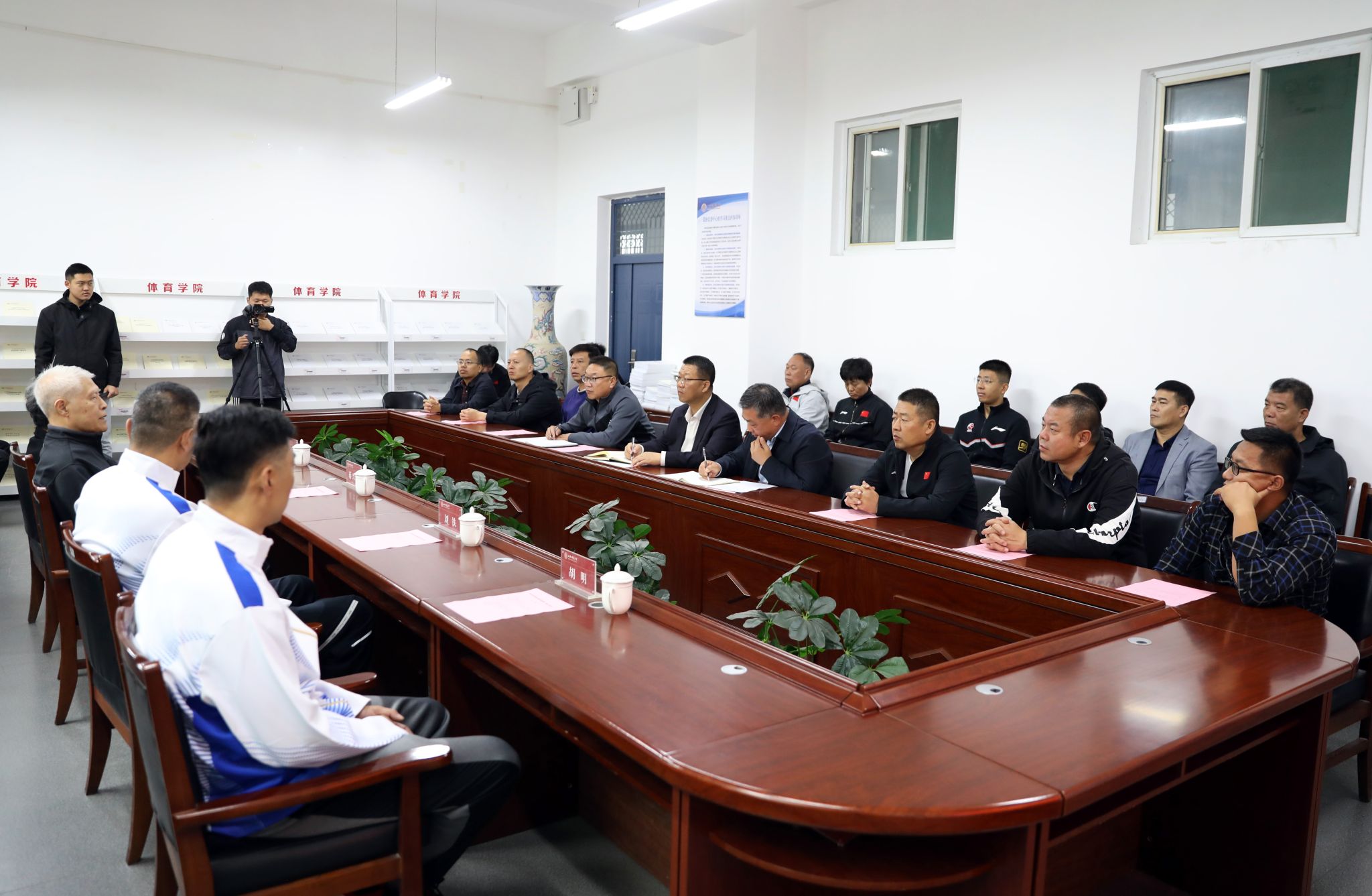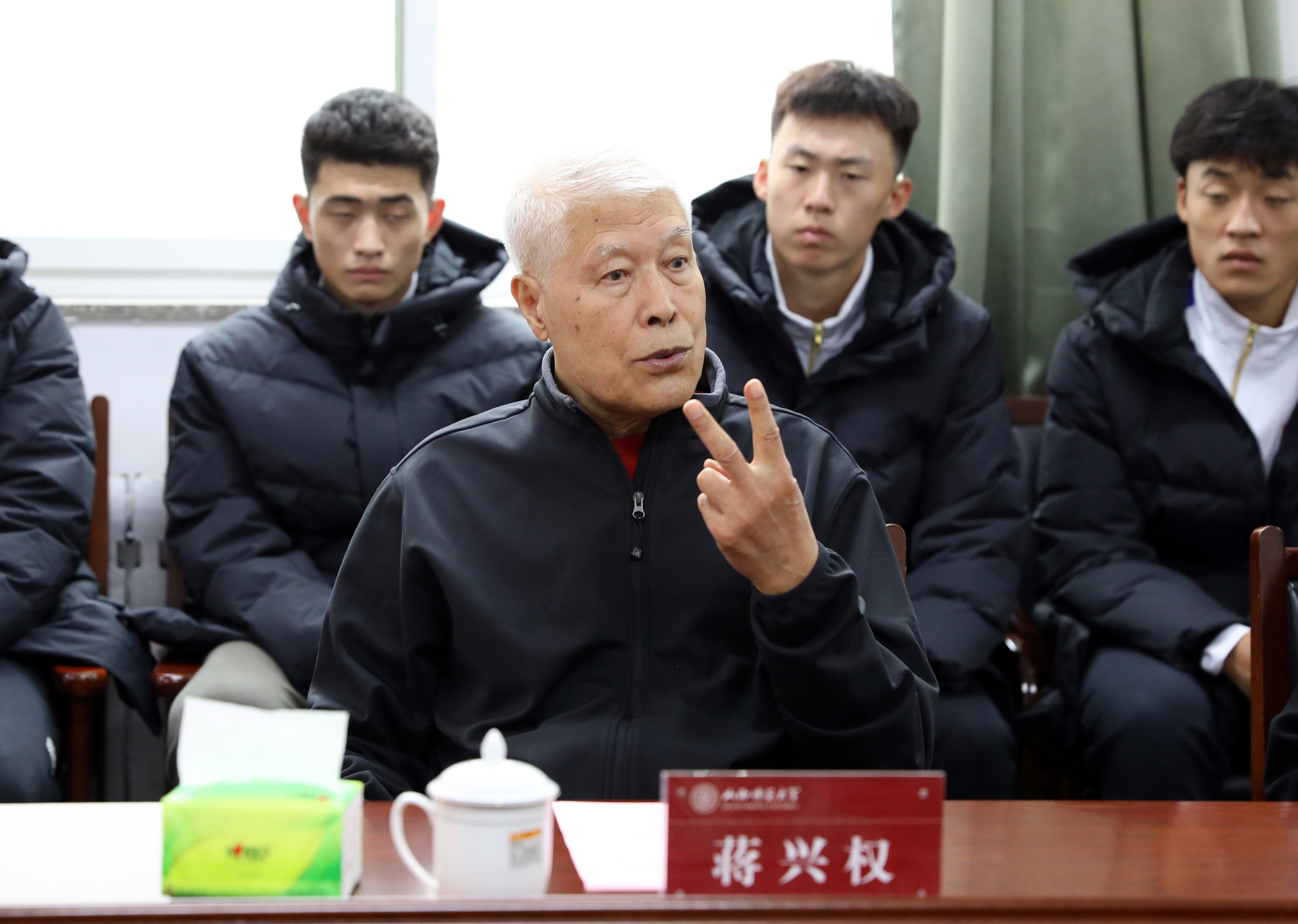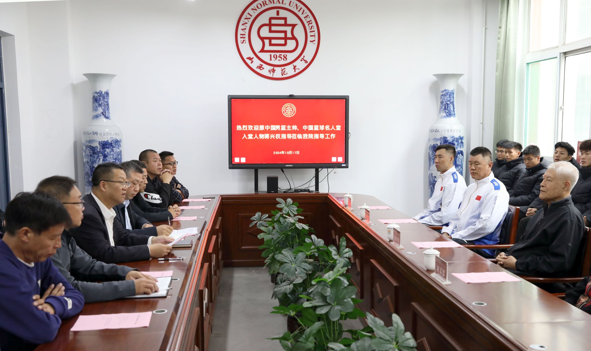 2024 年 10 月 17 日上午 10 时,太阳成集团tyc234cc迎来了一位篮球界的传奇人物——蒋兴权教练。在太阳成集团tyc234cc二层会议室,一场关于篮球教学、训练工作的座谈会如火如荼地展开。院领导、各系部负责人、篮球专业教师代表、男篮教练员以及男篮队员代表齐聚一堂,共同期待着蒋兴权教练为公司的篮球教学、训练工作带来新的启示。座谈会由公司党委书记卫建平主持。