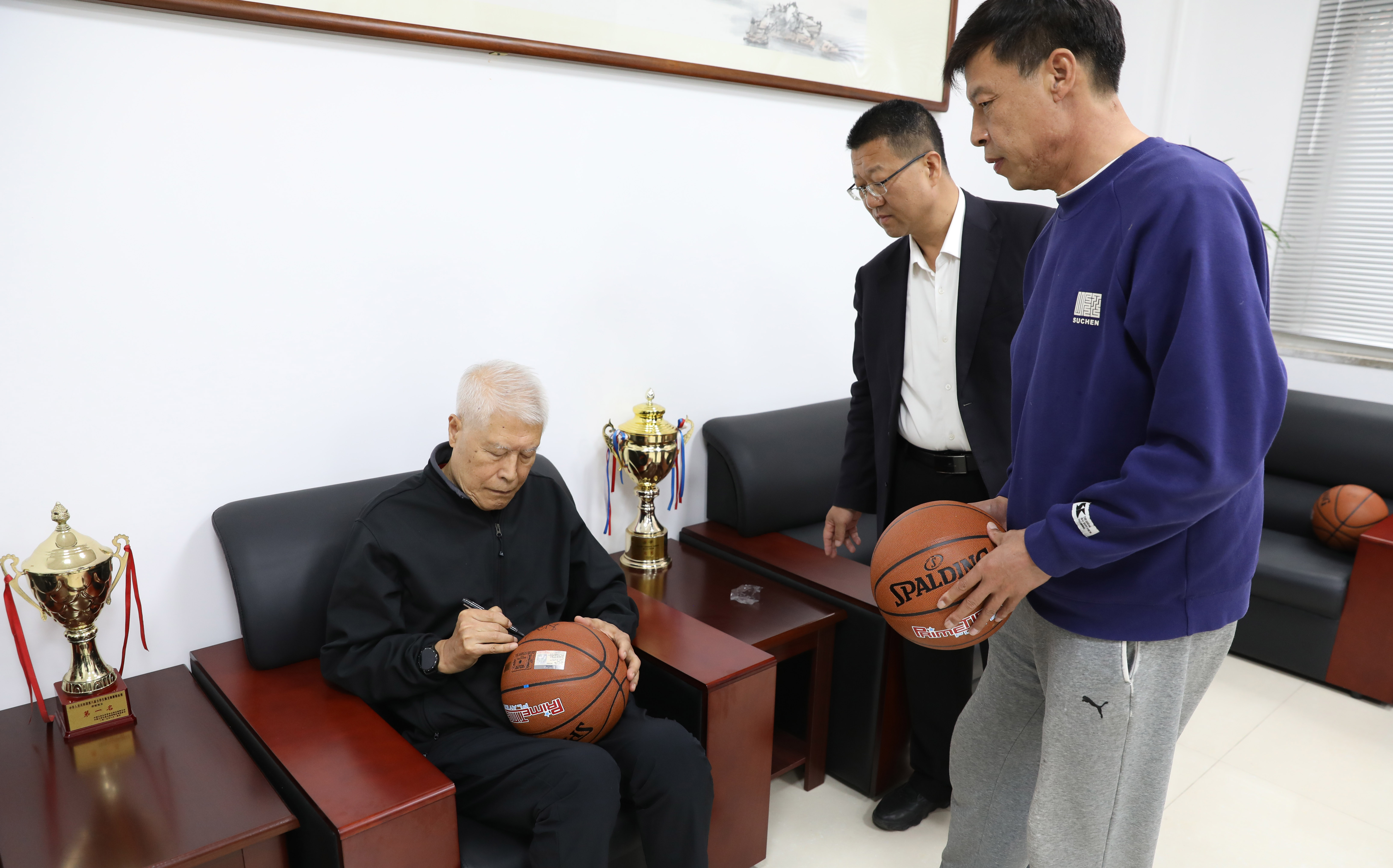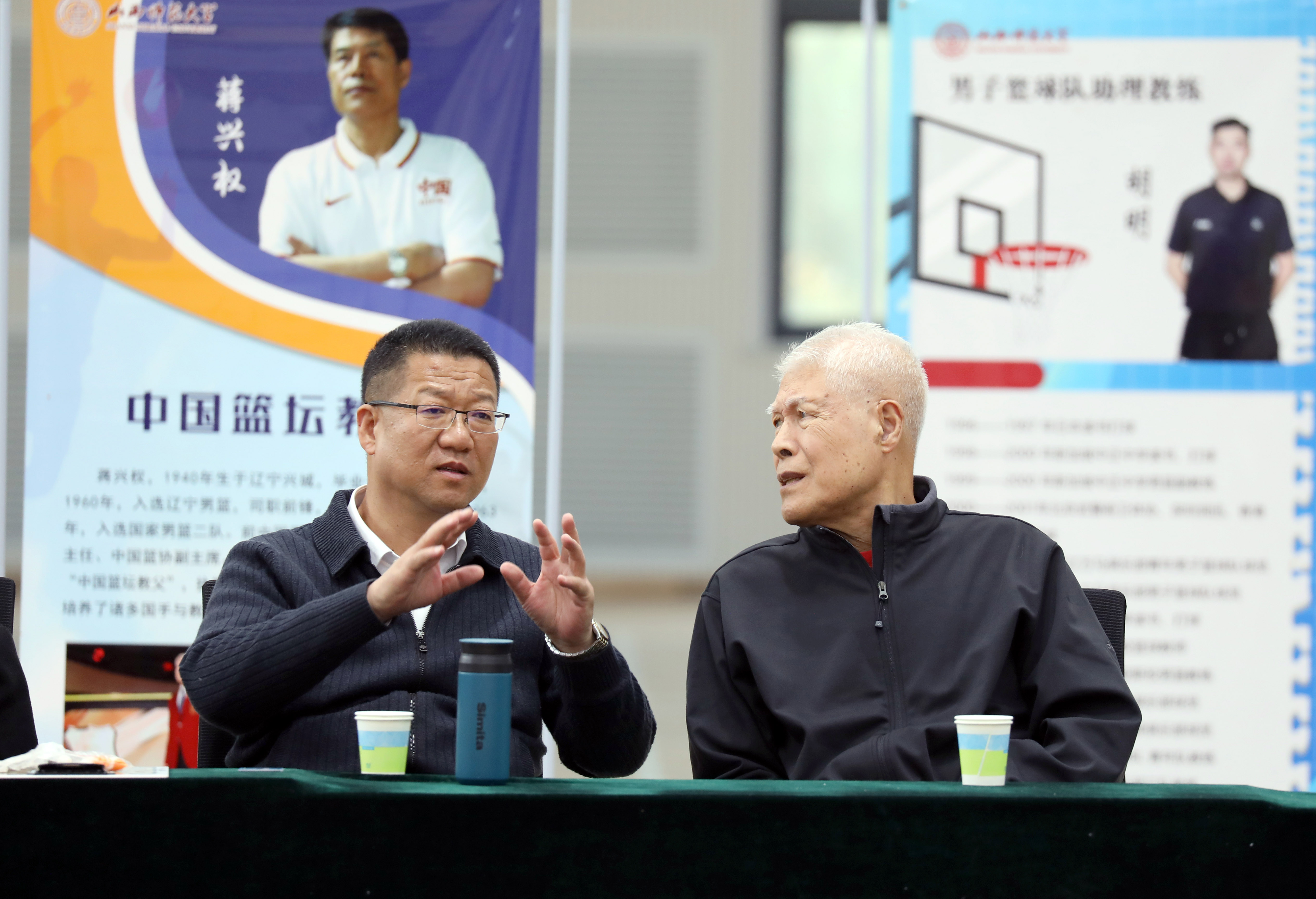 座谈会伊始,太阳成集团tyc234cc经理王彤向大家隆重介绍了蒋兴权教练。蒋兴权教练在中国篮球界的地位举足轻重,他的执教生涯充满了辉煌与荣耀,被誉为“中国篮坛教父”执教 50 余载,培养了诸多国手与教练。王彤还详细介绍了公司的发展历程、团队力量以及在篮球教学、训练方面所取得的成绩与面临的挑战。