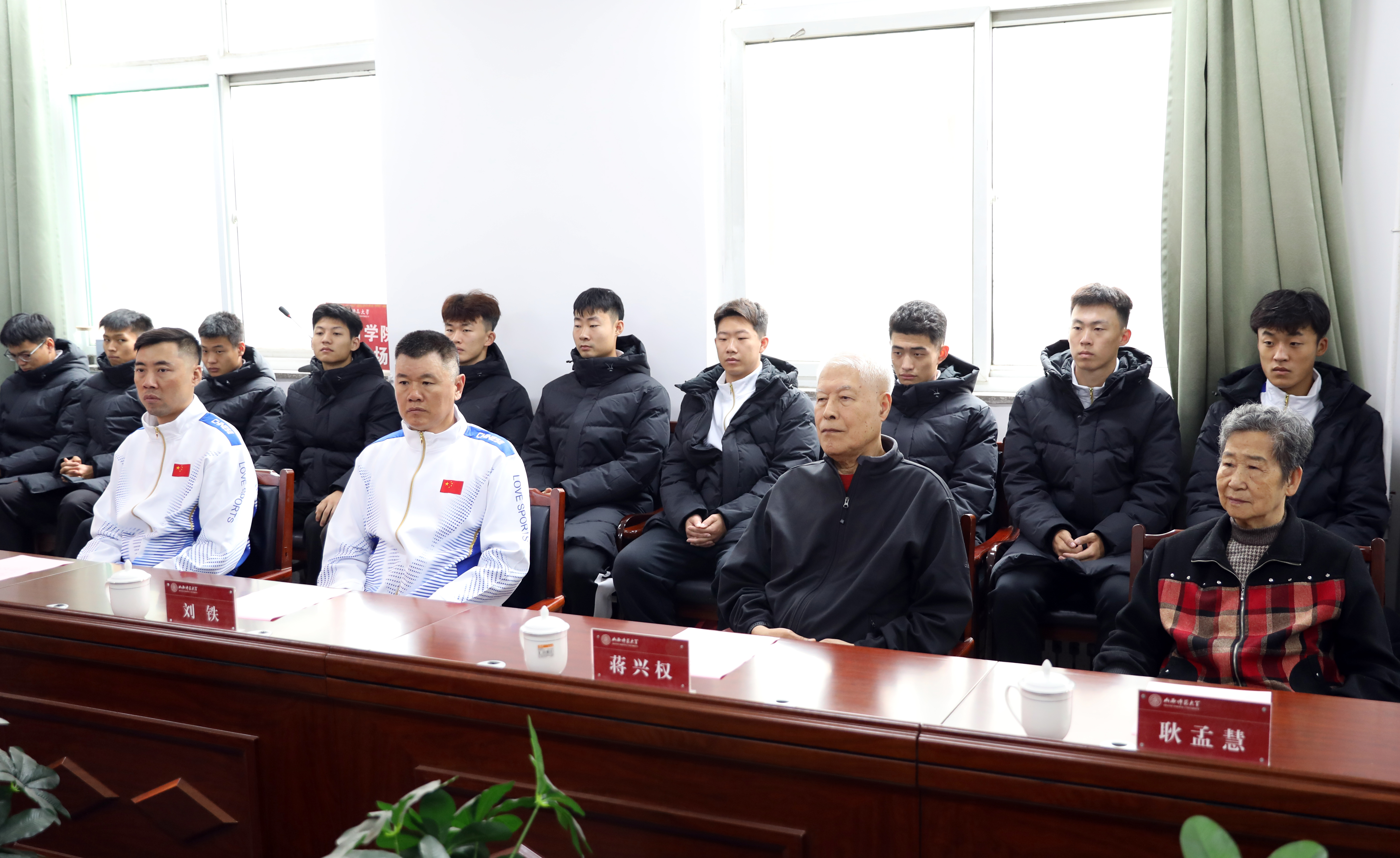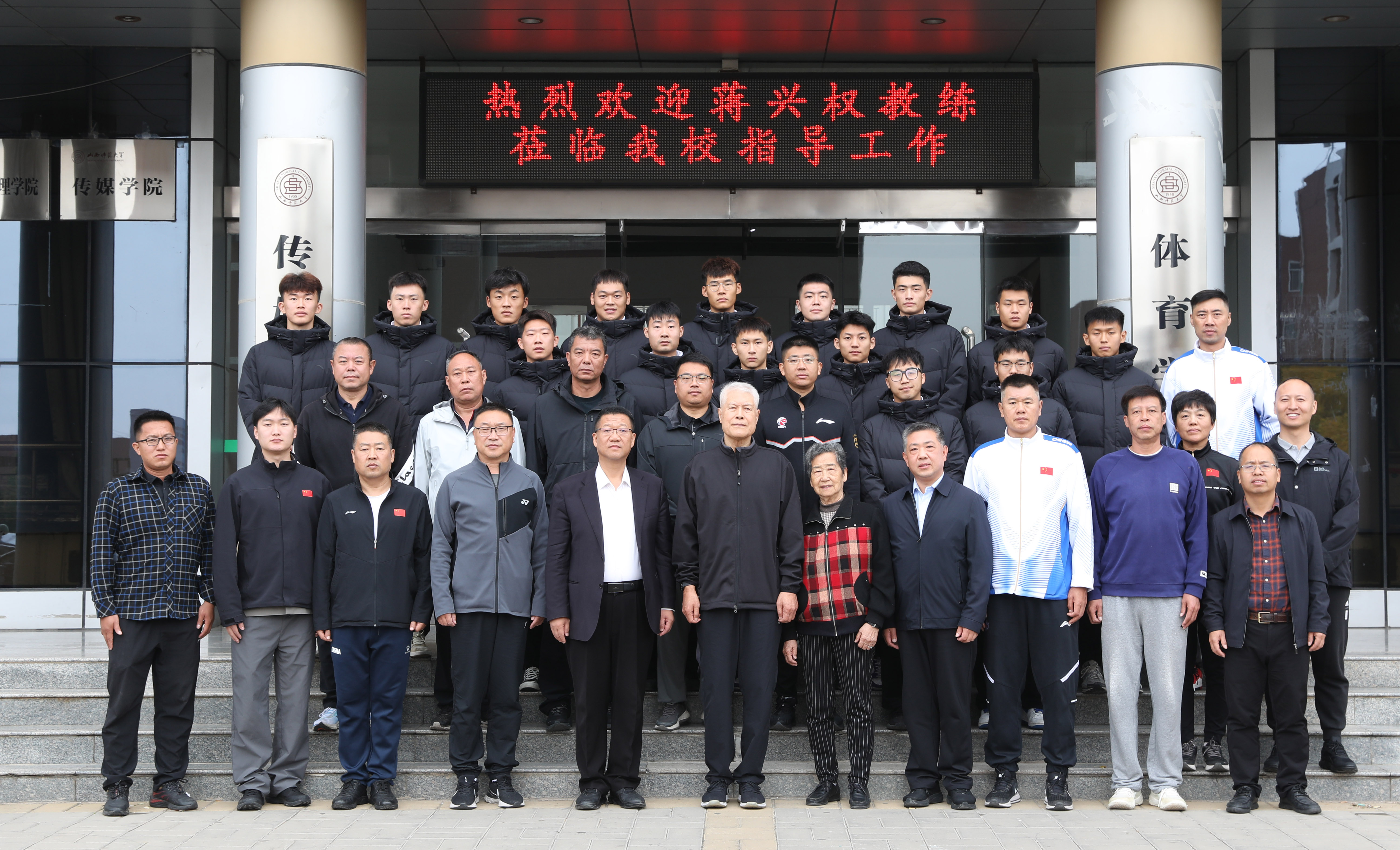 参加座谈会人员与蒋兴权教练合影