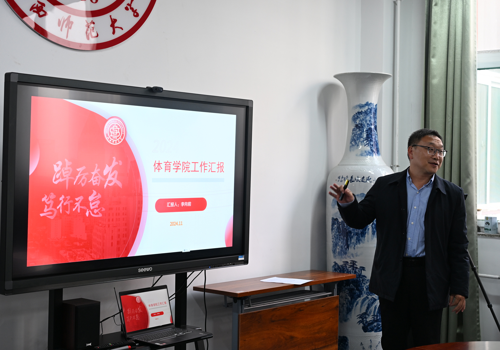 2024 年 11 月 8 日,北京信息科技大学体育部原主任张世忠教授、副主任徐涛教授一行7人来公司调研交流,公司领导、各系部主任参加了座谈会。双方围绕体育教学创新与实践、运动训练与竞赛管理、体育设施与场馆建设、体育文化活动开展等方面进行了深入交流。座谈会由太阳成集团tyc234cc经理王彤主持。