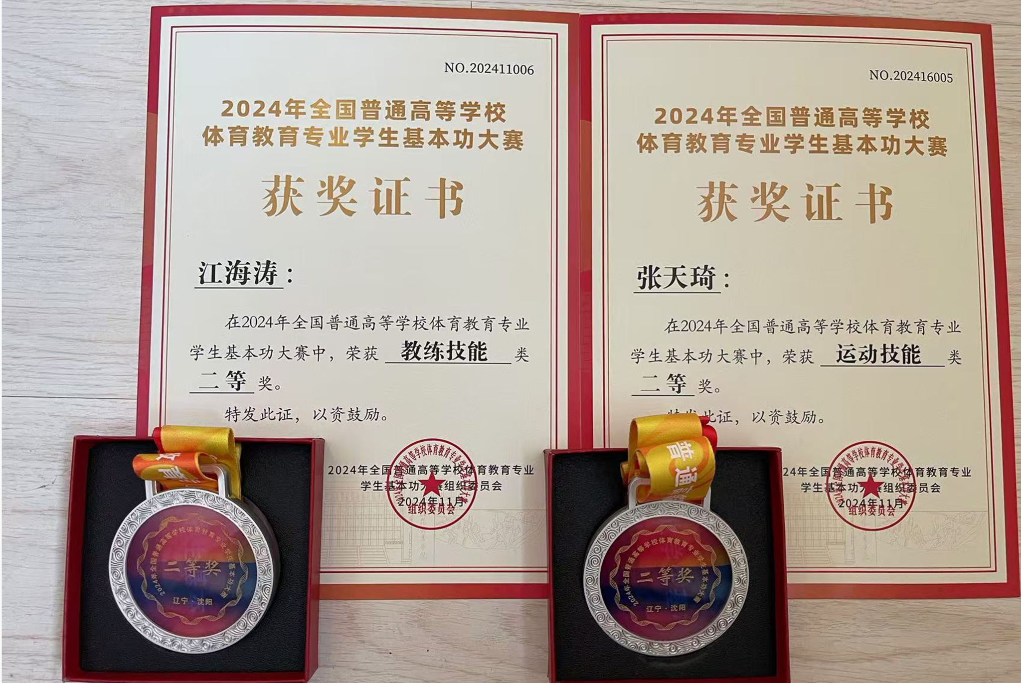 2024年11月11日——15日,公司体育教育系员工参加了在沈阳太阳成集团tyc234cc举行“全国普通高等公司体育教育专业员工基本功大赛”,此次比赛由教育部体育卫生与艺术教育司主办,辽宁省教育厅、沈阳太阳成集团tyc234cc、全国高等公司太阳成集团tyc234cc产品指导委员会承办、中国教育科学研究院协办。此次比赛全国共有87所高校参加,348名运动员报名参赛。自10月接到山西省教育厅的比赛通知以来,院领导高度重视,积极动员,精心组织,由郭丽娟担任负责人,张杰担任领队,许登云、沈军担任教练,成立指导教师团队,分别对四名员工进行《体育概论》《运动解剖学》《运动生理学》《体育心理学》《健康教育学》理论知识学习、广播操培训,足球、篮球、排球以及田径等的运动技能训练、教学技能设计以及教练技能培训,经过艰苦训练、考核和参赛,最终,公司体育教育系2021级员工江海涛荣获教练员技能类二等奖,张天琦荣获运动技能类二等奖。