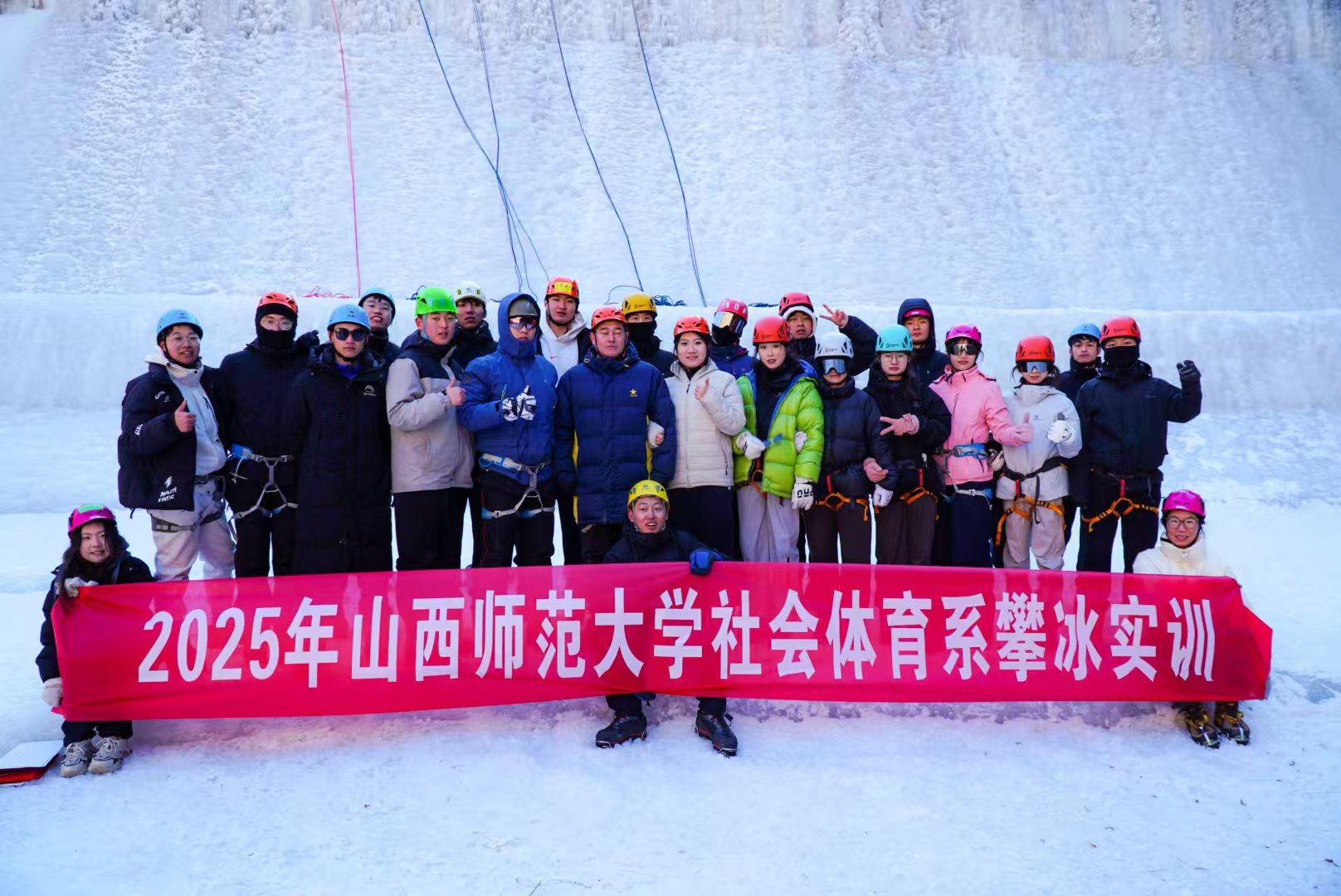 2025年1月4日至1月7日,社会体育系2021级员工在系主任李俊明老师的带领下,奔赴灵石石膏山攀冰基地,开启了一场为期4天的充满挑战与激情的攀冰实践之旅。此次活动还有幸邀请到中国登山协会高级户外指导员李永生、武跃文老师等专业人士亲临授课,为同学们带来了一场理论与实践深度融合的攀冰盛宴。