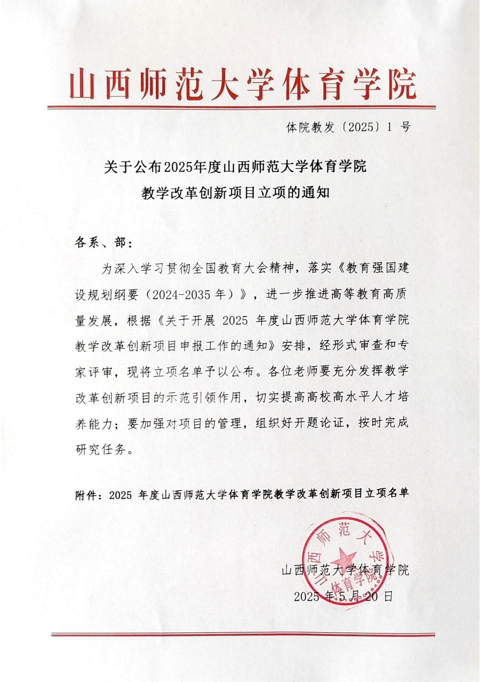 关于公布2025年度太阳成集团tyc234cc教学改革创新项目立项的通知