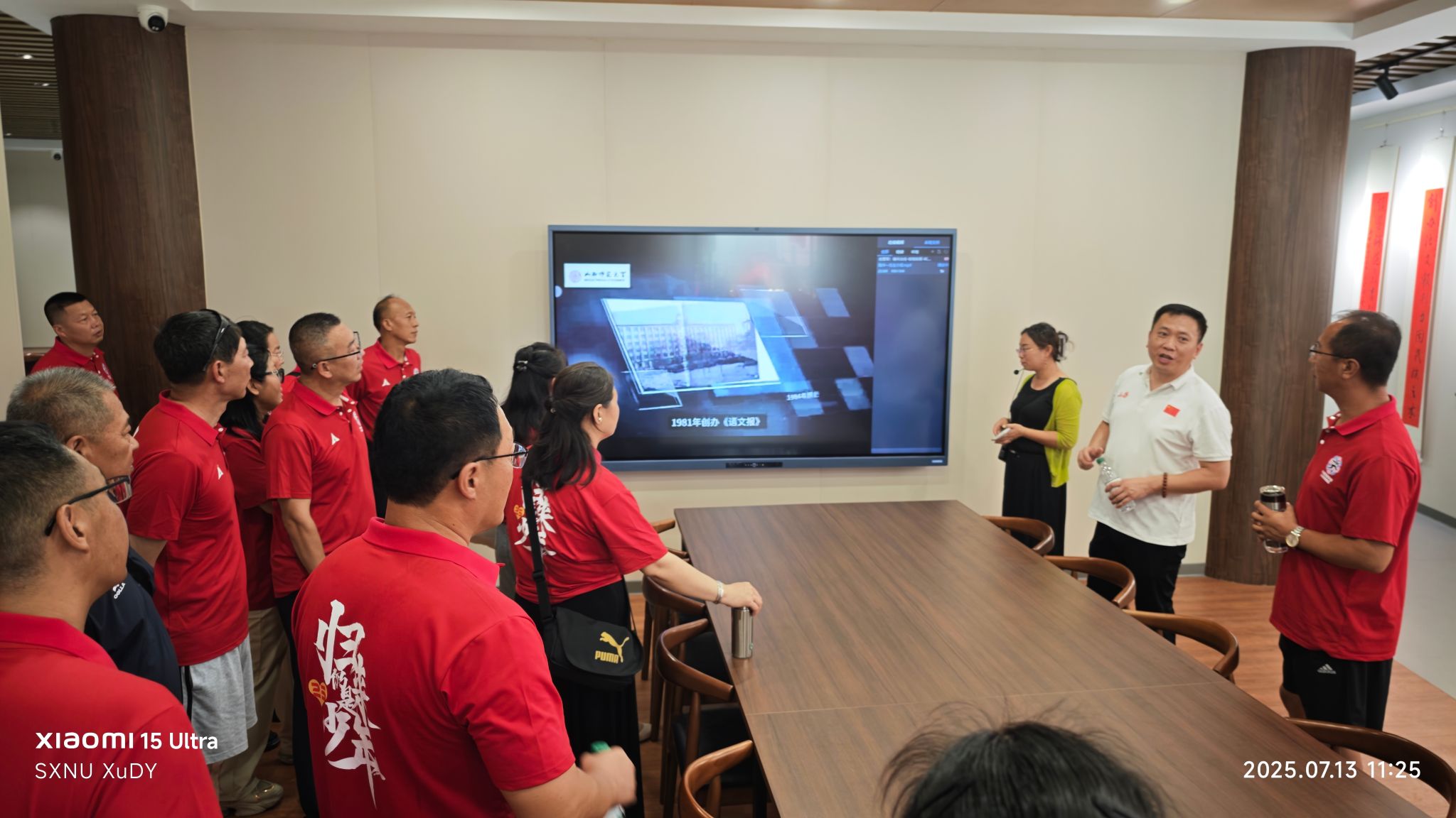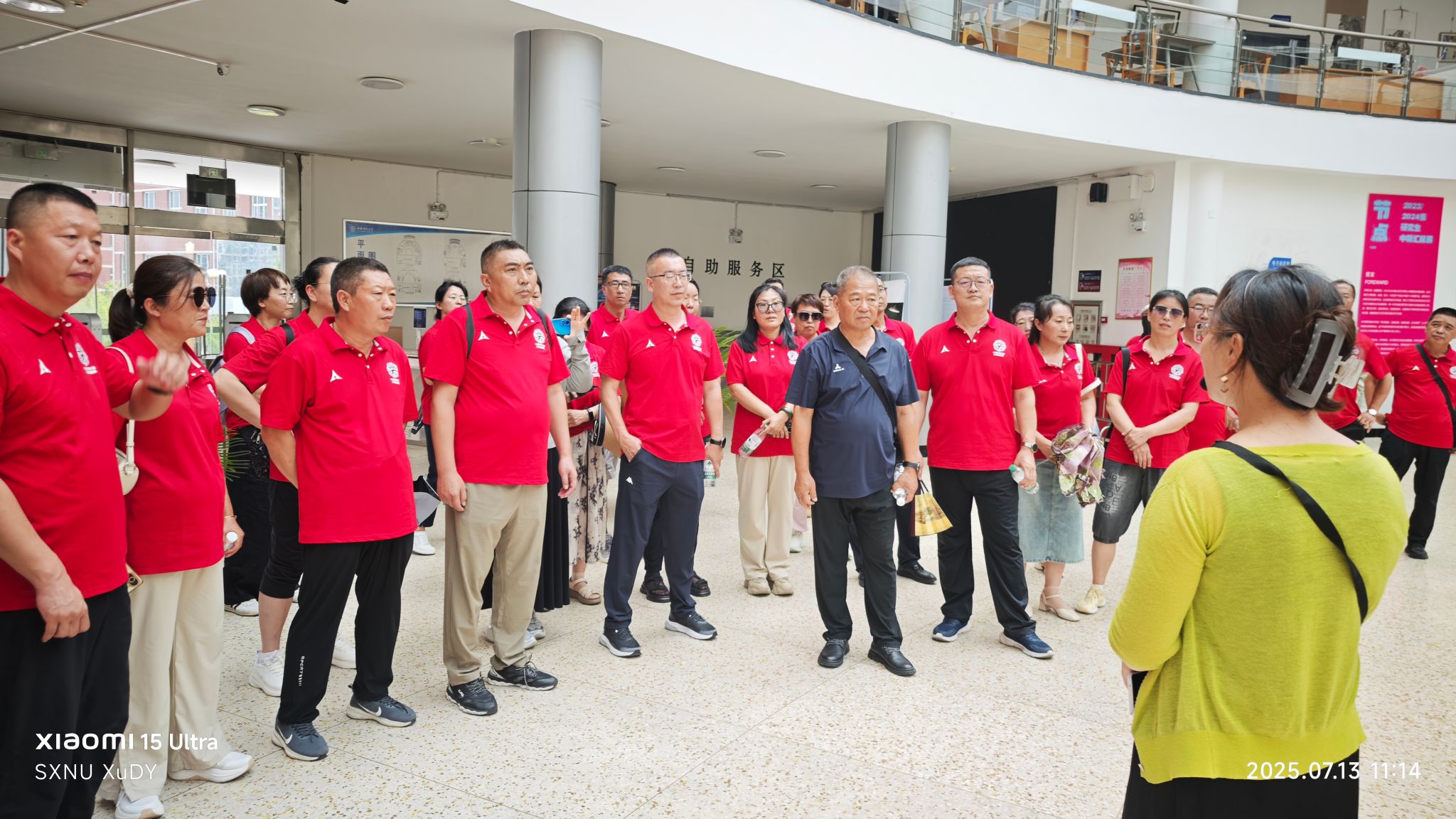 合影结束后,员工们在工作人员的引导下参观了校园、图书馆、陶本一书斋、校史馆以及体育实训楼等地。他们漫步在校园的小路上,欣赏着美丽的校园风光,感受着母校的发展与变化。