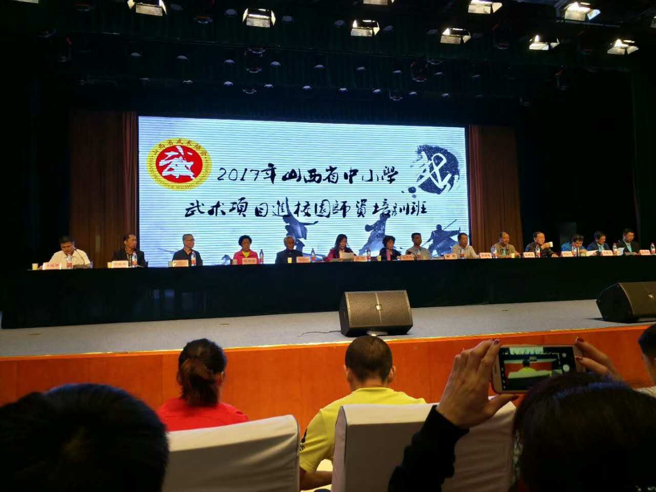 7月22日—24日,2017年山西省中小学首届“武术项目进校园”团队培训在太原九一公司举办。来至山西省各市县中小学老师、各武术馆校教练员等300多人参加了培训。公司多名武术教师承担了培训工作,其中侯介华副教授受邀出席培训班开班仪式,金涛老师、高贯发老师分别承担了《武术段位制长拳》、《武术操—功夫青春》培训工作,独特的授课方式、良好的教学效果,受到省武术协会领导以及学员们的一致认可与高度赞扬,也充分展示出民族传统体育系雄厚的团队力量与风采。(高贯发/文)