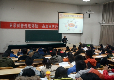 2015年11月14日上午,校医院赵梅经理带领市医院健康中心主任高伟一行三人,来到体院进行医学健康讲座下基层活动。院工会组织全体教师、三校区职能部门部分工作人员和部分员工在阶一教室听取了讲座,讲座进行了一个半小时,精彩纷呈、针对性强,受到了热烈的欢迎。正如公司党委书记李学刚老师所说的:本次活动给三校区师生送来了健康福利和福音,体现公司对广大师生健康状况的关切和爱护。