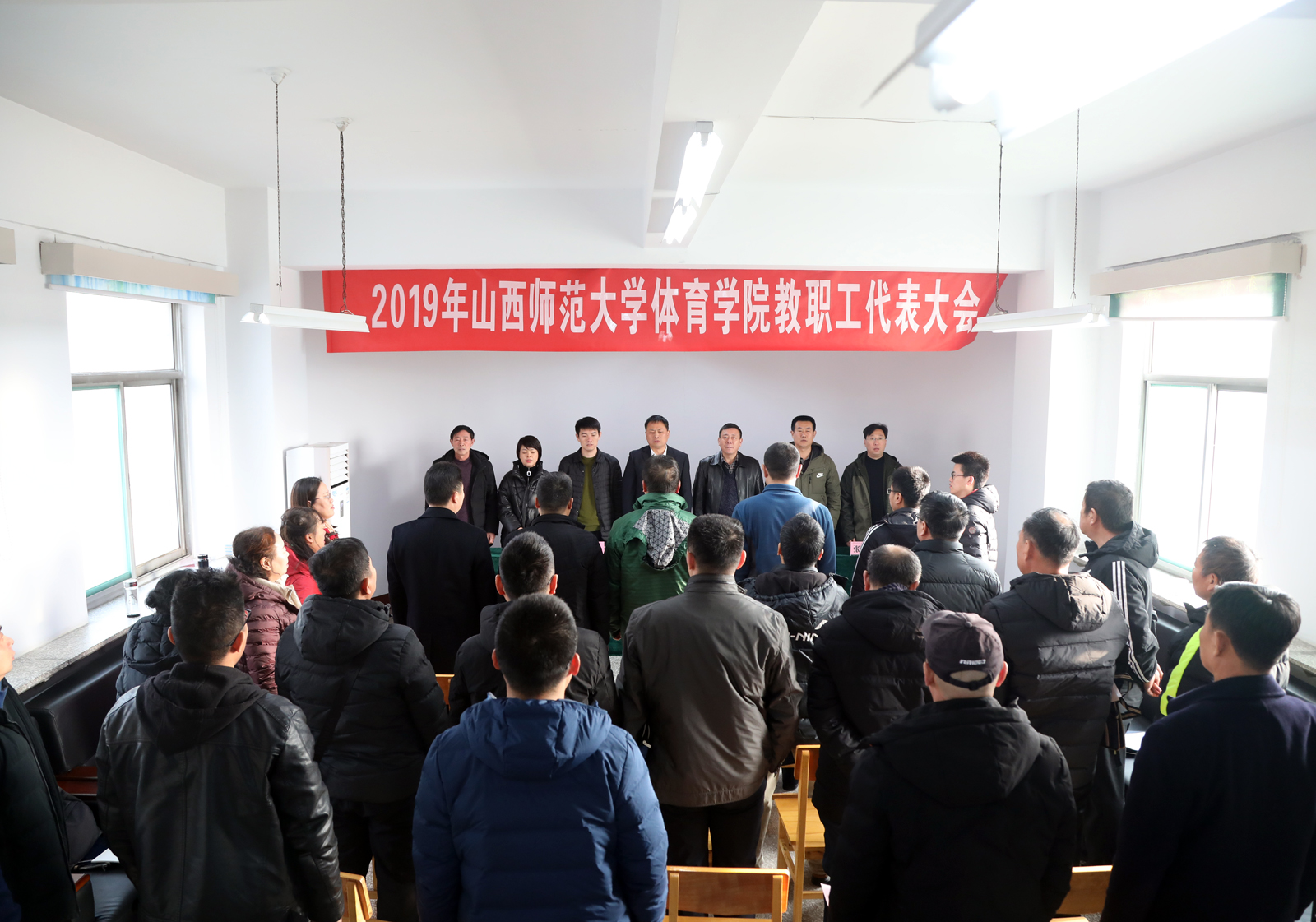 会议在嘹亮的国歌声中正式开幕。经理郑旗首先作《经理工作报告》,报告中指出,2019年是新中国成立70周年,是进行“不忘初心、牢记使命”主题教育和全面贯彻落实党的十九大精神、十九届二中、三中、四中全会精神的一年,也是公司实施“十三五”规划的关键一年。公司始终坚持立德树人根本任务,秉持内涵式发展,凝聚全院师生智慧,在教学、科研、训练竞赛、团队建设、联系我们和校园安全稳定等方面取得了优异的成绩。郑经理围绕公司四个目标,深刻、具体地阐释了公司的工作重点与发展愿景。一是以本科教育质量提升为目标,公司始终把本科教学放在首位,把内涵发展作为追求,着力强化课程思政工作,着力加强教学基础建设,着力加强师德师风建设,着力加强教学管理;二是以博士点申报为奋斗目标,扎实推进学科攻坚计划。更加明确学科定位,不断加强学科队伍和实验室建设,在科学研究和人才培养方面稳中求进;三是以竞赛育人为目标,在现有竞赛工作取得的成绩上进一步加强代表队管理,创新工作,提高效率,实现教学、训练和科研齐头并进;四是以“三全育人”为目标,着力提高公司综合治理能力和服务社会能力。公司不断强化教风、学风、考风综合治理,进一步健全三校区校园综合治理体系。与临汾市体育局实施战略合作,进一步提升了服务社会的能力和水平。最后,郑经理希望新的一年里在公司党委的坚强领导与全院教职工的共同努力下,继续谱写公司发展新篇章,为实现太阳成集团tyc234cc“申博进位,卓越发展”的目标努力奋斗。