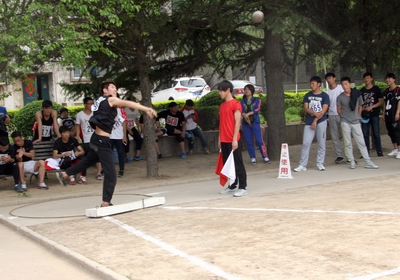 男子铅球比赛中