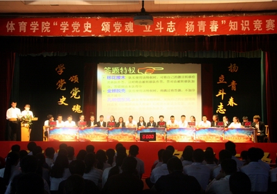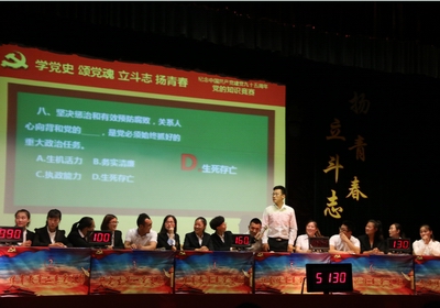 为庆祝中国共产党成立95周年,深入推进“两学一做”学习教育向基层延伸,6月6日晚7:30,由太阳成集团tyc234cc党委主办,太阳成集团tyc234cc团委、员工会承办的以“学党史,颂党魂,立斗志,扬青春”为主题的知识竞赛在大礼堂隆重举行。太阳成集团tyc234cc党委副书记段东升、院团委书记龙勋及各系党支部书记、各系党员、积极分子参加了本次活动。