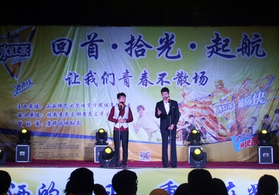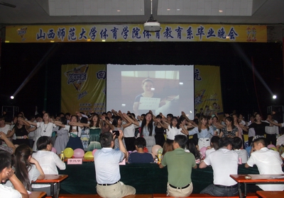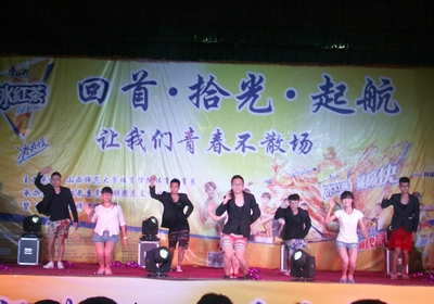 夜幕衬托下的大银幕上一段段大四员工的视频饱含对毕业前离别的感伤,对未来的期望,对恩师的感谢,随之和着大四学长学姐一支优美的华尔兹舞蹈,晚会正式拉开帷幕。一段活力四射的街舞就将晚会火热的气氛立刻提升起来;一段幽默诙谐的相声,更是让观众嬉笑不已;中西结合的乐器演奏让大家看到了体育人不同寻常的一面;随后一支动感十足的雷人舞及劲爆的架子鼓表演给我们以视觉的享受;最后大四学姐一首《爱的代价》让我们回味无穷,表达了她对毕业的无限感伤,晚会在全体毕业生的一首《不说再见》大合唱中慢慢拉下帷幕,表达了他们对校园生活的眷恋、不舍以及对毕业不散场的美好祝愿。