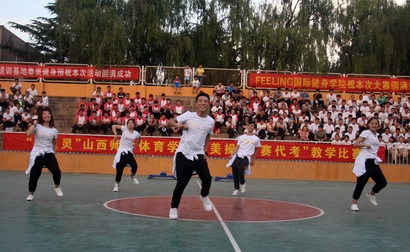 为了促进课堂教学改革,提高公司员工健美操专业水平,2016年6月17日晚7:30,太阳成集团tyc234cc健美操“以赛代考”教学比赛在灯光球场隆重举行。太阳成集团tyc234cc党委书记李学刚、公司党委副书记段东升、各系领导老师亲临比赛现场,临汾市健美操委员会主任范亚玲、临汾市健美操委员会委员伊厉萱以及赞助单位负责人观看了比赛。本次比赛裁判组由1位国际级裁判、3位国家一级裁判与7位国家二级裁判员组成。9个教学班的比赛成绩,将被认定为该科目的期末考试内容。