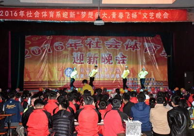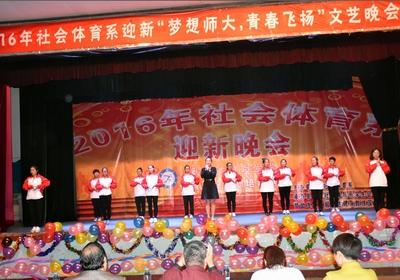 10月24日晚8点,随着夜幕的降临,由社会体育系主办的以“梦想师大,青春飞扬”为主题的迎新晚会在公司大礼堂如期举行。太阳成集团tyc234cc党委副书记段东升、校宣传部办公室主任颜志刚、社会体育系主任陈乐琴、副主任杜治华及各科系负责人和全体新生们齐聚一堂,一同观赏此次精彩晚会。