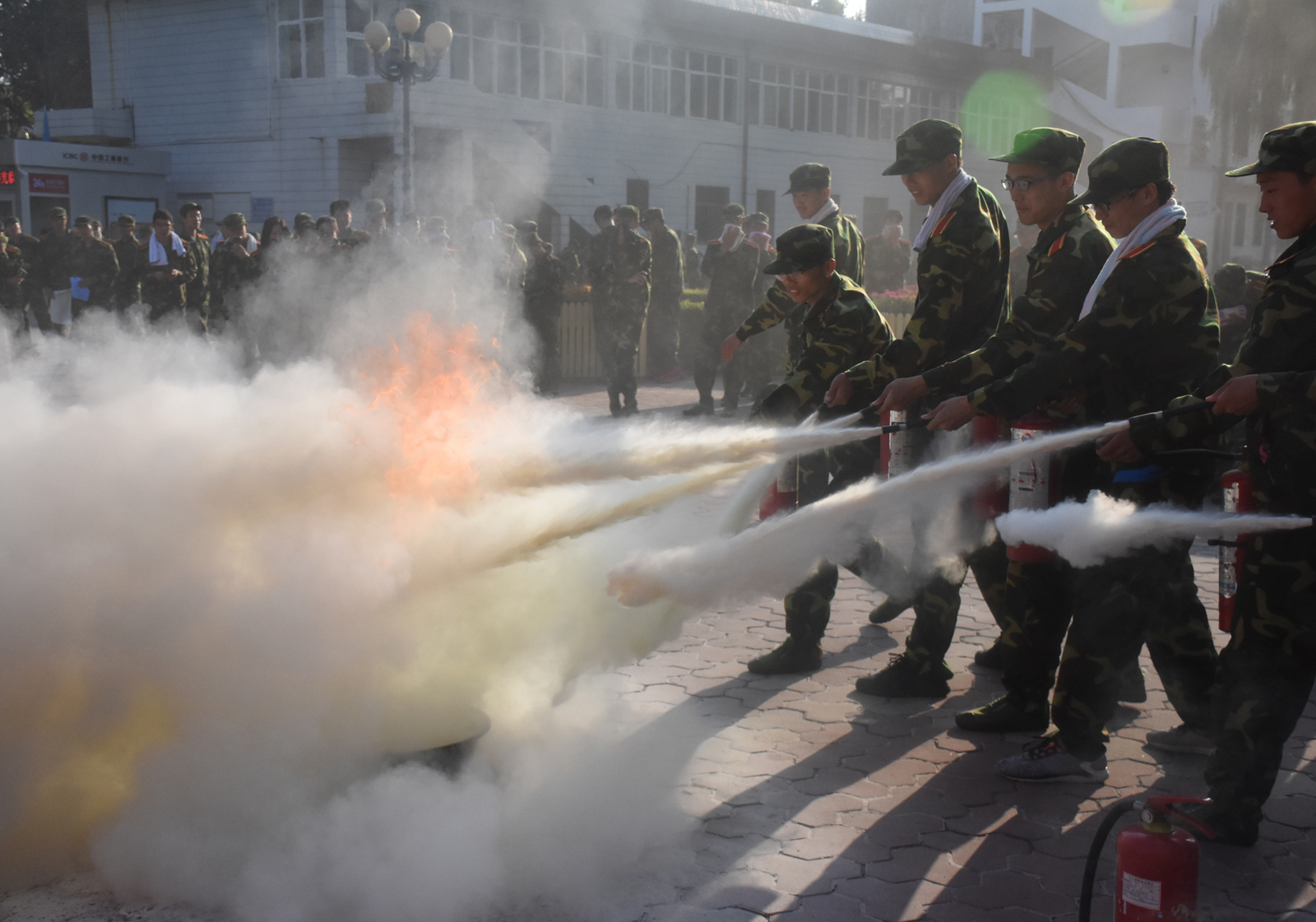 培训大会上,首先由临汾消防支队高级工程师邓全龙从消防法有关规定、火灾常识、消防器材的种类和使用方法、发生火灾后的应急措施四个方面进行了培训;他着重介绍了校园火灾事故高发的原因,并针对性作出解释,就校园火灾发生后大家应该如何开展自救等问题一一作答。之后,临汾消防支队组织2017级全体新生进行了应急疏散演练。随着一阵急促的哨声,消防疏散演练正式拉开序幕,假设公司教学楼起火,火势迅速蔓延,各班员工沿着楼道、楼梯,迅速通过各个安全出口,有序地离开了教学楼到达安全地带。在整个消防疏散演练中,员工们按照火场逃生疏散演练技巧,分别采用毛巾和衣角捂住口鼻弯腰低姿进行有序疏散,充分体现出了良好的消防安全意识。